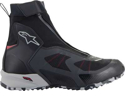 CR-8 Gore-Tex® ShoesCR-8 Gore-Tex® riding shoes are the perfect touring riding shoes for hardcore travelers in any weather conditions Featuring higher cut and differentiated aesthetics from the CR-X Drystar® Shoes, plus the 100% waterproof and breathable performance of the Gore-Tex® membrane Made from a stretch waterproof outer bootie construction with breathable textile panels, an angled waterproof zipper closure, and an inner bootie with a speed lace internal closure system for the highest levels of waterproof and breathable comfort Incorporates internally Alpinestars TPF transversal protection frame midsole, multiple-layer malleolus protection, and a reinforced heel counter and toe box Features a removable OrthoLite® insock for great comfort and breathability, an elasticated collar, plus a 10 mm drop for excellent walking ergonomics off the bike 47% Polyurethane, 24% Polyamide, 15% Microfiber, 7% Polyester, 6% Elastic & 1% Elasthane. Inner/lining: 86% Polyester, 9% Polyamide & 5% Elastic
