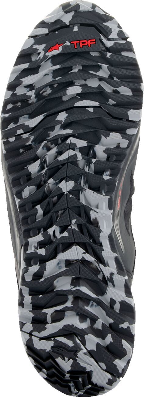 CR-8 Gore-Tex® ShoesCR-8 Gore-Tex® riding shoes are the perfect touring riding shoes for hardcore travelers in any weather conditions Featuring higher cut and differentiated aesthetics from the CR-X Drystar® Shoes, plus the 100% waterproof and breathable performance of the Gore-Tex® membrane Made from a stretch waterproof outer bootie construction with breathable textile panels, an angled waterproof zipper closure, and an inner bootie with a speed lace internal closure system for the highest levels of waterproof and breathable comfort Incorporates internally Alpinestars TPF transversal protection frame midsole, multiple-layer malleolus protection, and a reinforced heel counter and toe box Features a removable OrthoLite® insock for great comfort and breathability, an elasticated collar, plus a 10 mm drop for excellent walking ergonomics off the bike 47% Polyurethane, 24% Polyamide, 15% Microfiber, 7% Polyester, 6% Elastic & 1% Elasthane. Inner/lining: 86% Polyester, 9% Polyamide & 5% Elastic
