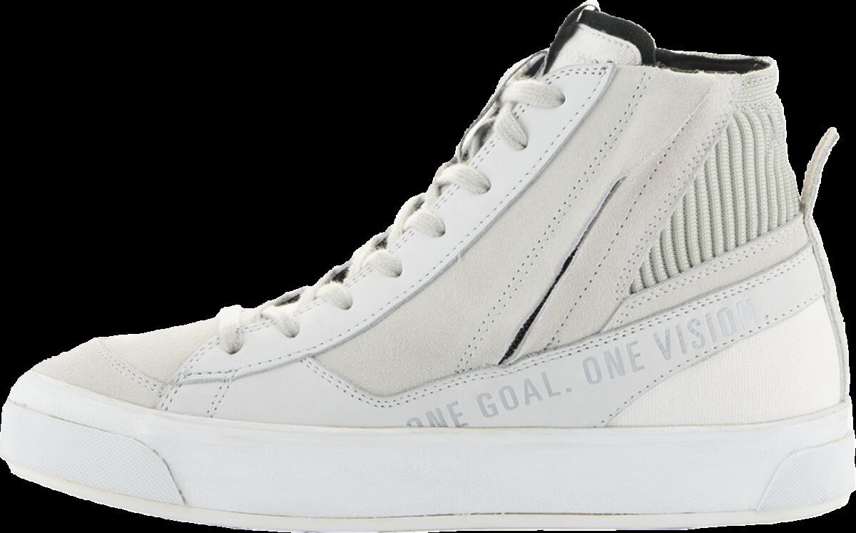 Stella Stated Podium ShoesAnatomically engineered for an optimized women's fit Alpinestars modern interpretation of a retro street sneaker Combines styling of minimalistic skate pumps with a thick vulcanized sole to create a protective yet supremely comfortable riding shoe with a stripped back, edgy style that looks great in any urban riding environment Women's specific last is engineered and optimized to follow natural shape and contours of women's feet for maximum rider comfort, on and off bike Mid sole features an 8mm platform along its entire length to offer greater elevation for shorter riders Main upper constructed from Nubuck, canvas and split suede for optimal blend of durability and comfort Split suede toebox for enhanced durability Classic lace closure at front with a lateral zip for a secure, precise fit Ankle collar constructed with soft knitted mesh for enhanced rider comfort Dual layer mid sole support for optimal comfort and support Alpinestars vulcanized rubber urban sole with bandage for sole for optimal grip and comfort, on and off bike Ortholite® insole delivers long-term cushioning and high level of breathability and comfort Integrated dual density ankle disks for impact protection with external multi-layer padding for additional coverage Alpinestars Transversal Protection Frame (TPF) protects the foot while delivering necessary support on footrest without compromising front foot flexion for superior walking comfort 38% Cow Leather, 36% Genuine Suede, 16% Polyester & 10% Cotton. Inner Lining: 69% Polyester, 15% Synthetic, 10% Microfiber Suede & 6% Cow Leather 38% Cow Leather, 36% Genuine Suede, 16% Polyester & 10% Cotton. Inner/lining: 69% Polyester, 15% Synthetic, 10% Microfiber Suede & 6% Cow Leather