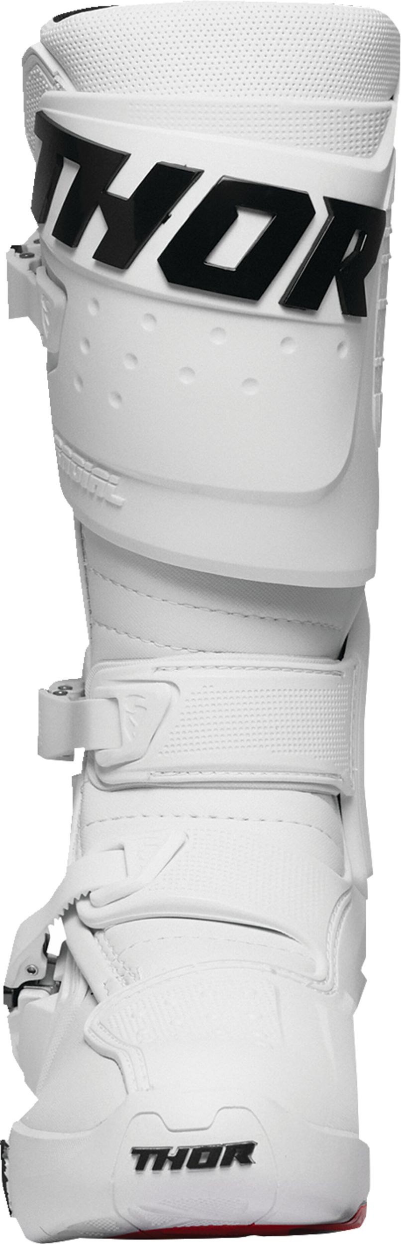 Radial MX BootsPre-curved injection molded components throughout Radial hinge component adds structure and reduces overextension Injection-molded positive-lock buckle system Adjustable straps allow for a custom and secure fit Injection-molded medial-abrasion plate with integrated shift protection Fully synthetic calf overlays deliver premium durability and optimal grip Low-profile toe box for unhindered shifting Uni-directional outsole with steel shank for rigidity Replaceable outsole inserts for extended wear Mesh liner promotes airflow while interior EVA panels enhance comfort