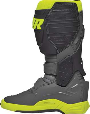 Radial MX BootsPre-curved injection molded components throughout Radial hinge component adds structure and reduces overextension Injection-molded positive-lock buckle system Adjustable straps allow for a custom and secure fit Injection-molded medial-abrasion plate with integrated shift protection Fully synthetic calf overlays deliver premium durability and optimal grip Low-profile toe box for unhindered shifting Uni-directional outsole with steel shank for rigidity Replaceable outsole inserts for extended wear Mesh liner promotes airflow while interior EVA panels enhance comfort
