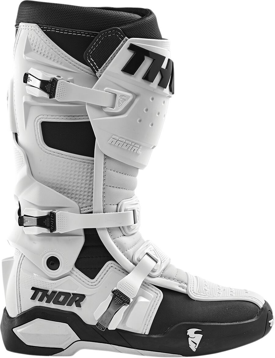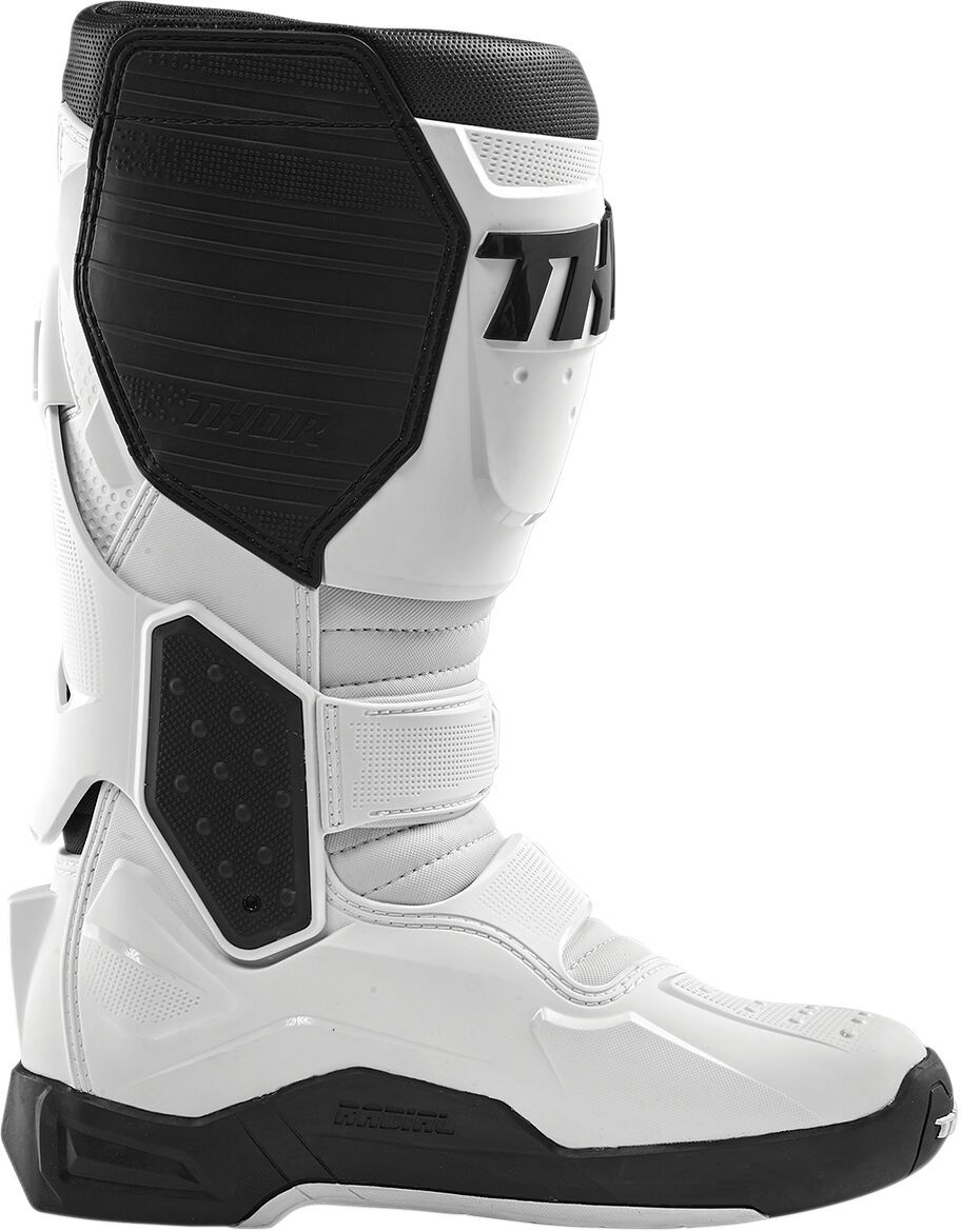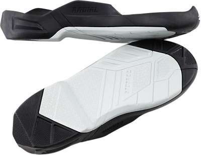 Radial Boots Replacement OutsolesMesh liner promotes airflow while interior EVA panels enhance comfort Replaceable outsole inserts for extended wear Uni-directional outsole with steel shank for rigidity Low profile toe box for unhindered shifting Fully synthetic calf overlays deliver premium durability and optimal grip Injection molded medial abrasion plate with integrated shift protection Adjustable straps allow for a custom and secure fit Injection molded positive-lock buckle system Radial hinge component adds structure and reduces overextension Pre-curved injection molded components throughout