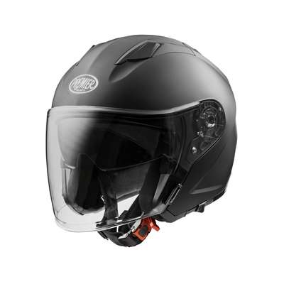 Dokker HelmetOuter shell construction is ABS thermoplastic material which is lightweight and safe in case of impact. Inner shell is made of EPS material with varying densities depending on zone ensuring perfect response to impacts. Main visor is transparent polycarbonate with scratch resistant treatment, designed to cover the whole face for protection from wind and dust. Second interior visor is dark for comfort against strong light, working like sunglasses. Relief present in the lower part, once raised causes the visor to disappear inside the shell. Two air vents in the top and extractor on the back ensure good ventilation. Interior of the helmet is designed to be comfortable, allows for wide view and feeling of freedom of movement. All interior are made hypoallergic by the Sanitized treatment while also being removable and washable. Micrometric safety strap makes the hook and release fast.