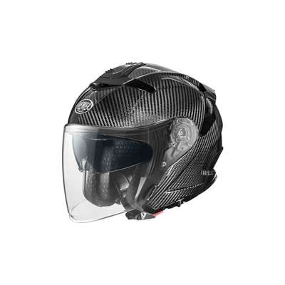 JT5 Carbon HelmetOuter shell construction is aramid carbon fiber combined with epoxy resin making the shell light, elastic and resistant to impacts. Inner shell is made of EPS material with variable density on different areas to ensure perfect response to shocks. Outer shell is produced in two mold sizes to perform better depending on the size required. Small shell covers sizes XS to M and larger shell covers L to XXL. Main visor is transparent polycarbonate which is anti-scratch treated, covering the whole face for protection from wind and dust. Inner visor is dark working like sunglasses in case of strong light. It is operated via lever present in the lower part, lowering or raising it inside the shell. Inner visor is also equipped with Pinlock® anti-fog system predisposition on the visor. Two air intakes on top and extractor on back ensure good ventilation. Interior has been designed for comfort, wide view and freedom of movement. All interiors are hypoallergenic by the Sanitized treatment which are removable and washable. Helmet is predisposed to the installation of Bluetooth® communication systems. Micrometric strap closure makes the attachment and release fast.