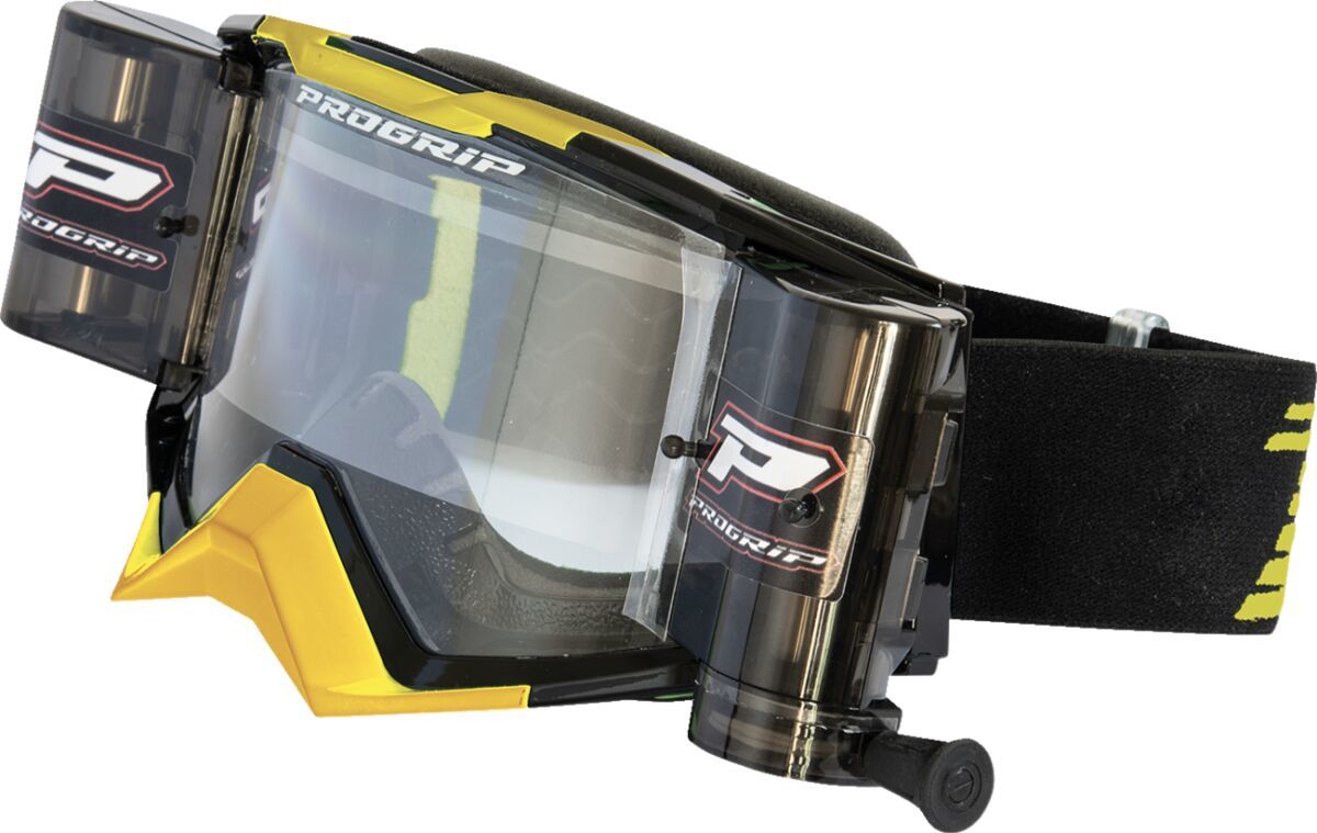 3309 Rapid Goggles With Roll-Off SystemPro Grip 3309 Rapid mx goggles with roll-off system. Rubber logo on elastic band. Wide lens with tear-off pins. Anti-fog Anti scratch Anti UV Pre-cut sponge and molded channels allow wearer to use own eye glasses. Removable nose protection. Triple silicone strip to secure grip on the helmet. One size fits any helmet.