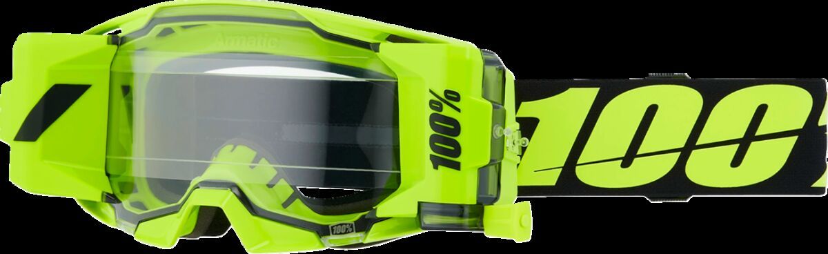 ARmatic Forecast Goggle50 mm Ultra-Wide Film — Provides the maximum vertical field of view Translucent Rear Canisters — Provide easy viewing of remaining film Multiple Canister Scrapers — Clean the film to reduce mud consumption Smooth-Action Film Puller — Provides a rapid cleaning of the entire field of view Overspin Limiter — Keeps film taut at all times to resist turbulent wind release Utilizes the proven Armega rapid lens changing and locking system Supports multiple Tear-Off options, such as leak-resistant laminated tear-offs (sold separately)