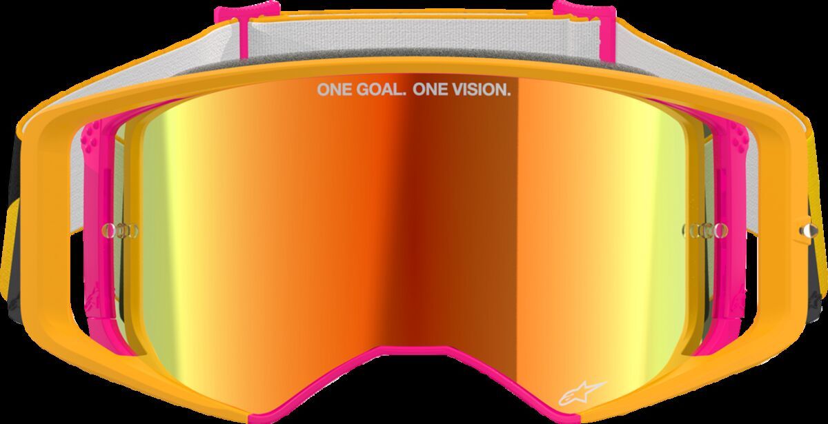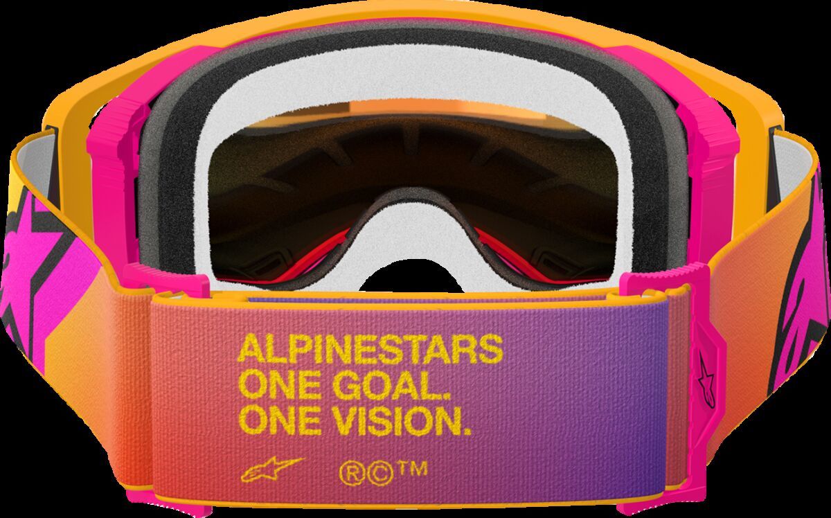 Supertech Corp GoggleAbsolute Vision™ (ABS-V) Lens features a specially formulated warm-colored tint that reduces uncomfortable stray flat light, enhancing eye comfort and clarity Lens made from high-quality, impact-resistant polycarbonate material, the injection-molded lens ensures zero visual distortion The Super-Lock® is a lens locking system that keeps the ABS Vision injected lens secure and sealed tightly in position The lens locking system allows the rider to quickly swap out the lens to another lens or Roll-Off system with a simple glide of the thumb The DYAD solid outer frame holds the lens in place, creating a seal against flying debris and roost The outer frame is double-injected to a soft, conforming inner frame made from exclusive A-FLEX face-forming material, allowing it to adapt to varying face shapes for an exceptional seal and fit The Wrap-Around Outrigger system is designed to evenly pull the goggle into the face from the center of the frame, creating a secure seal and fit The Ideal Strap Position (ISP) wedge positions the 45 mm silicone-backed strap perfectly on the helmet every time, ensuring an even pull on the goggle for the best fit possible The Supertech 3D molded, multi-layer face foam creates a comfortable fit for nearly every face shape, ensuring a perfect seal, a wide open field of view, and effective sweat management demanded by pro riders Moisture channel acts as a gutter to direct sweat away from the goggle lens, preventing drips or splashes Moisture channel guides sweat to run across the top and down the sides of the frame Forced-Air Ventilation system and frame design is angled to allow air to flow under the goggle and through the 100 PPI vents, ensuring maximum ventilation The Supertech Goggles’ expansive field of view provides exceptional peripheral vision, designed to integrate seamlessly with Alpinestars' ULTRA-WIDE 48 mm Roll-Off system The 45 mm injected buckles replace the traditional fold-and-sew system, providing a sleeker, low-profile strap with easy adjustability The 45 mm woven strap with silicone traction ensures everything stays in place whether on the track or trail 31% Acrylonitrile-butadiene-styren, 18% Polyamide, 16% Polycarbonate, 10% Thermoplastic Polyurethane, 8% Sylicon, 7% Polyester, 4% Elasthane, 4% Polyoxymethylene & 2% Polyurethane