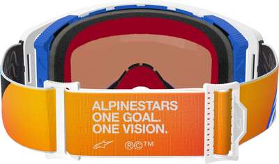 Supertech Corp GoggleAbsolute Vision™ (ABS-V) Lens features a specially formulated warm-colored tint that reduces uncomfortable stray flat light, enhancing eye comfort and clarity Lens made from high-quality, impact-resistant polycarbonate material, the injection-molded lens ensures zero visual distortion The Super-Lock® is a lens locking system that keeps the ABS Vision injected lens secure and sealed tightly in position The lens locking system allows the rider to quickly swap out the lens to another lens or Roll-Off system with a simple glide of the thumb The DYAD solid outer frame holds the lens in place, creating a seal against flying debris and roost The outer frame is double-injected to a soft, conforming inner frame made from exclusive A-FLEX face-forming material, allowing it to adapt to varying face shapes for an exceptional seal and fit The Wrap-Around Outrigger system is designed to evenly pull the goggle into the face from the center of the frame, creating a secure seal and fit The Ideal Strap Position (ISP) wedge positions the 45 mm silicone-backed strap perfectly on the helmet every time, ensuring an even pull on the goggle for the best fit possible The Supertech 3D molded, multi-layer face foam creates a comfortable fit for nearly every face shape, ensuring a perfect seal, a wide open field of view, and effective sweat management demanded by pro riders Moisture channel acts as a gutter to direct sweat away from the goggle lens, preventing drips or splashes Moisture channel guides sweat to run across the top and down the sides of the frame Forced-Air Ventilation system and frame design is angled to allow air to flow under the goggle and through the 100 PPI vents, ensuring maximum ventilation The Supertech Goggles’ expansive field of view provides exceptional peripheral vision, designed to integrate seamlessly with Alpinestars' ULTRA-WIDE 48 mm Roll-Off system The 45 mm injected buckles replace the traditional fold-and-sew system, providing a sleeker, low-profile strap with easy adjustability The 45 mm woven strap with silicone traction ensures everything stays in place whether on the track or trail 31% Acrylonitrile-butadiene-styren, 18% Polyamide, 16% Polycarbonate, 10% Thermoplastic Polyurethane, 8% Sylicon, 7% Polyester, 4% Elasthane, 4% Polyoxymethylene & 2% Polyurethane