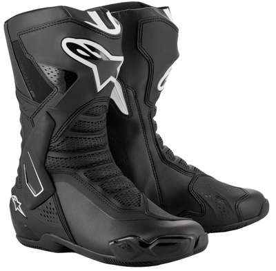 SMX-6 V3 BootsPacked with a host of innovative safety and protective features, SMX-6 V3 is the ultimate track and performance riding all-rounder, and incorporates race-derived technology and materials to give riders a crucial performance edge on the track, and the street Advanced microfiber upper construction for lightweight high performance protection against abrasion and superb levels of flexibility Front flex and back flexion zones are constructed with textile over-injected with a soft Thermoplastic Polyurethane (TPU) for enhanced impact abrasion while also promoting a natural forwards and backwards movement Alpinestars unique ankle brace protection system provides a bio-mechanical support and protection between the lateral top calf, the shin and ankle, for superior ankle articulation, while also limiting hyper-torsion, hyper-extension and hyper-flexion, as well as providing Achilles and ankle impact protection Alpinestars Lace-Lock System is constructed from an advanced polymer resin for a guaranteed quick, precise and secure closure Equipped with a TPU shifter zone for superior protection on the lower medial side Strategically positioned, race-derived TPU shin plate protector delivers superior impact and abrasion resistance Dual density TPU ankle protectors are strategically positioned between the upper and padded lining to provide the strategic protection in key areas Replaceable, dual density TPU toe slider with screw-in assembly provides comprehensive protective coverage around the outer toe area while still being supremely flexible for walking comfort Replaceable heel slider and external side heel slider are strategically positioned for optimum shock dissipation and absorption, while promoting sliding in the event of an accident 37% TPU, 35% Microfiber, 11% Polyester, 8% Polyurethane, 8% TPR & 1% Elastic. Inner/lining: 82% Polyester & 18% Synthetic
