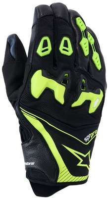 SP-R Pro GlovesSP-R Pro glove is engineered for performance when riding supernaked or hypermotard bikes. Constructed from highly abrasion resistant, full grain goat leather and durable but lightweight textile material, its protective too thanks to MotoGP-derived SP-R divided knuckle. Streamlined, race design with racing-derived protective performance features that is also perfect for everyday use. Leather finger construction for optimum blend of abrasion durability, comfort and abrasion resistance. Perforated leather fingers for airflow. Textile fabric main chassis for light weight, durability and comfort. Strategically positioned suede on the inside of the thumb for dexterity, comfort, freedom of movement and durability. Perforated synthetic suede backhand for airflow and durability, with synthetic leather palm for abrasion resistance and durability. Accordion finger panels for dexterity and flexibility. Elasticated wrist for freedom of movement and a secure closure. All-new SP-R divided TPU knuckle is optimized for finger flexibility and range of motion, avoiding pressure points when braking/changing gear, especially while cornering. TPR finger reinforcements for enhanced durability and superior abrasion resistance. 41% Polyester, 33% Polyamide, 12% Goat Leather, 10% Polyurethane, 4% Elastane