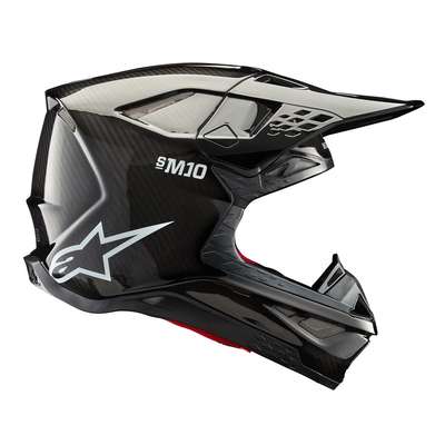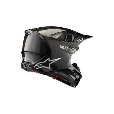 Supertech M10 Solid HelmetThe S-M10 shell sizing solution ensures each helmet fit size has its own appropriate shell size to deliver the most anatomical solution for the wide variety of fit needs, thus ensuring riders have the correct fit to improve comfort, reduce overall weight, and improve effectiveness of the helmet in an impact. Surface curvature promotes reduced friction on impact, allowing deflection and transfer of energy to protect the rider's head from direct force to the skull and referred to the neck and spinal column. The S-M10's design offers a smooth, attractive, aerodynamic profile which is streamlined and free of a y external channels and features that might act as a load point in an impact or compromise the overall integrity of the helmet's construction. Fitted with E-2, last generation of MIPS, integrated low friction layer designed to reduce rotational motion transferred to the brain from angled impacts to the head. Chin bar's base area specifically sculpted to give a relief section and raised to clear the collarbone. Soft EPS liner extends beyond the helmet shell itself and is covered by a flexible rubber compound providing a reduced chance of any sort of collarbone injury. A-Head Fitment System allows easy adjustment of the angle and height that the helmet sits on the head. Ultra-ventilated helmet with 28 individual intake and exhaust ports, not including the eye port, with 18 intakes and 10 exhausts. Eject technology includes the eject helmet removal system. Rotational acceleration and oblique impact performance. Removable side pads, made from a semi-soft polymer for added protection, provide contact area to help spread impact energy. Emergency Release System (ERS) Emergency Visor Release and Visor Extension provides protection. 20% Polyurethane, 17% Polychloroprene, 16% Carbon Fiber, 14% Fiberglass, 12% Polystyrene (EPS), 7% Aramid Fiber, 7% Polyamide, 4% Polyvinil Chloride, 2% Steel & 1% Expanded Polypropylene