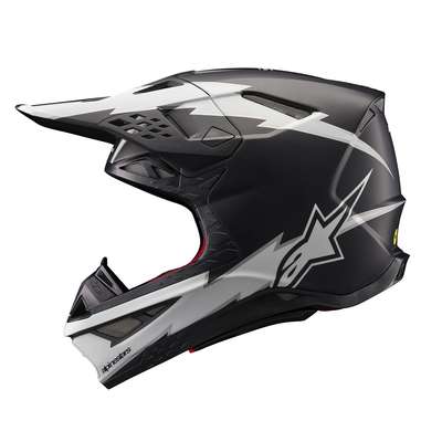 Supertech M10 Ampress HelmetThe S-M10 shell sizing solution ensures each helmet fit size has its own appropriate shell size to deliver the most anatomical solution for the wide variety of fit needs, thus ensuring riders have the correct fit to improve comfort, reduce overall weight, and improve effectiveness of the helmet in an impact. Surface curvature promotes reduced friction on impact, allowing deflection and transfer of energy to protect the rider's head from direct force to the skull and referred to the neck and spinal column. The S-M10's design offers a smooth, attractive, aerodynamic profile which is streamlined and free of any external channels and features that might act as a load point in an impact or compromise the overall integrity of the helmet's construction. Fitted with E-2, last generation of MIPS, integrated low friction layer designed to reduce rotational motion transferred to the brain from angled impacts to the head. Chin bar's base area specifically sculpted to give a relief section and raised to clear the collarbone. Soft EPS liner extends beyond the helmet shell itself and is covered by a flexible rubber compound providing a reduced chance of any sort of collarbone injury. A-Head Fitment System allows easy adjustment of the angle and height that the helmet sits on the head. Ultra-ventilated helmet with 28 individual intake and exhaust ports, not including the eye port, with 18 intakes and 10 exhausts. Eject technology includes the eject helmet removal system. Rotational acceleration and oblique impact performance. Removable side pads, made from a semi-soft polymer for added protection, provide contact area to help spread impact energy. Emergency Release System (ERS) Emergency Visor Release and Visor Extension provides protection. 40% Carbon-Kevlar®-Fiberglass, 15% Polystyrene (EPS), 12% Polyurethane, 10% Polypropylene, 8% PVC, 4% Acrylonitrile-Butadiene-Styren, 4% Polyamide, 2% Steel & 5% Other