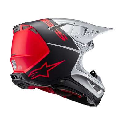 Supertech M10 Flood MIPS® HelmetThe S-M10 shell sizing solution ensures each helmet fit size has its own appropriate shell size to deliver the most anatomical solution for the wide variety of fit needs, thus ensuring riders have the correct fit to improve comfort, reduce overall weight, and improve effectiveness of the helmet in an impact. Surface curvature promotes reduced friction on impact, allowing deflection and transfer of energy to protect the rider's head from direct force to the skull and referred to the neck and spinal column. The S-M10's design offers a smooth, attractive, aerodynamic profile which is streamlined and free of any external channels and features that might act as a load point in an impact or compromise the overall integrity of the helmet's construction. Fitted with E-2, last generation of MIPS, integrated low friction layer designed to reduce rotational motion transferred to the brain from angled impacts to the head. Chin bar's base area specifically sculpted to give a relief section and raised to clear the collarbone. Soft EPS liner extends beyond the helmet shell itself and is covered by a flexible rubber compound providing a reduced chance of any sort of collarbone injury. A-Head Fitment System allows easy adjustment of the angle and height that the helmet sits on the head. Ultra-ventilated helmet with 28 individual intake and exhaust ports, not including the eye port, with 18 intakes and 10 exhausts. Eject technology includes the eject helmet removal system. Rotational acceleration and oblique impact performance. Removable side pads, made from a semi-soft polymer for added protection, provide contact area to help spread impact energy. Emergency Release System (ERS) Emergency Visor Release and Visor Extension provides protection. 40% Carbon-Kevlar®-Fiberglass, 15% Polystyrene (EPS), 12% Polyurethane, 10% Polypropylene, 8% PVC, 4% Acrylonitrile-Butadiene-Styren, 4% Polyamide, 2% Steel & 5% Other