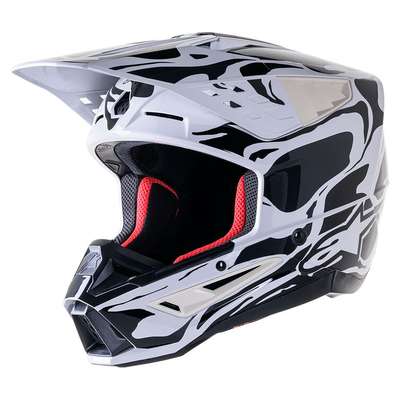 Supertech M5 Mineral HelmetLightweight outer shell is constructed from a technologically advanced impact resistant thermoplastic in two sizes. Side shell couple with soft EPS foam prevents damage to collarbone in the event of a crash. The inner and outer surfaces are engineered to minimize the effects of oblique impacts. Multiple density inner liner to ensure the correct density in the correct area for enhanced impact absorption. Emergency release system and removable cheek pads permit the safe and easy removal of the cheek pads while the helmet is still on, while the 3D contoured foam ensures rider comfort. Removable comfort liner with Silverplus® treated anti-bacterial fabrics for excellent moisture wicking, effectively drawing perspiration away from the skin. Anti-microbial liner is removable and washable. Anti-microbial liner is removable and washable. Hydration tube channels are integrated into the helmet’s cheek pads for convenience and performance. Soft textile chin strap is 26mm and is wider than certification requirements for optimal safety and rider comfort. Stainless steel D-rings to ensure a tight and secure fit. Patented visor release system ensures the visor is released with the correct pre-determined amount of force, irrespective of the angle of impact. Maximized ventilation and high levels of heat transfer exchange thanks to multi-air inlets and exhaust ports. The visor has been designed to direct air into the ports for enhanced airflow. 47% Acrylonitrile-Butadiene-Styren, 17% Polystyrene (EPS), 17% Polyurethane, 6% Nylon, 6% Polypropylene, 4% PVC, 1% Thermoplastic Elastomermer, 1% Steel & 1% Other