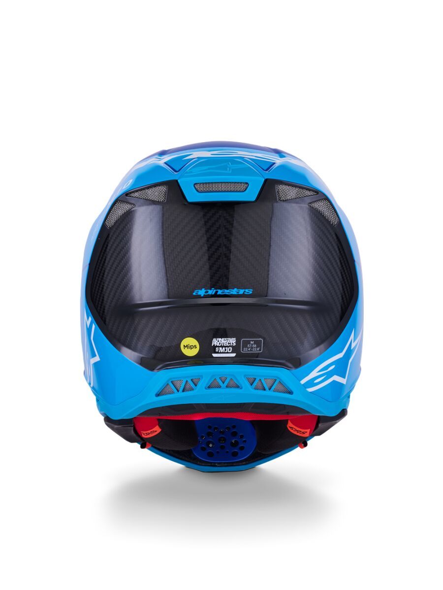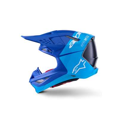 Supertech M10 Flood MIPS® HelmetThe S-M10 shell sizing solution ensures each helmet fit size has its own appropriate shell size to deliver the most anatomical solution for the wide variety of fit needs, thus ensuring riders have the correct fit to improve comfort, reduce overall weight, and improve effectiveness of the helmet in an impact. Surface curvature promotes reduced friction on impact, allowing deflection and transfer of energy to protect the rider's head from direct force to the skull and referred to the neck and spinal column. The S-M10's design offers a smooth, attractive, aerodynamic profile which is streamlined and free of any external channels and features that might act as a load point in an impact or compromise the overall integrity of the helmet's construction. Fitted with E-2, last generation of MIPS, integrated low friction layer designed to reduce rotational motion transferred to the brain from angled impacts to the head. Chin bar's base area specifically sculpted to give a relief section and raised to clear the collarbone. Soft EPS liner extends beyond the helmet shell itself and is covered by a flexible rubber compound providing a reduced chance of any sort of collarbone injury. A-Head Fitment System allows easy adjustment of the angle and height that the helmet sits on the head. Ultra-ventilated helmet with 28 individual intake and exhaust ports, not including the eye port, with 18 intakes and 10 exhausts. Eject technology includes the eject helmet removal system. Rotational acceleration and oblique impact performance. Removable side pads, made from a semi-soft polymer for added protection, provide contact area to help spread impact energy. Emergency Release System (ERS) Emergency Visor Release and Visor Extension provides protection. 40% Carbon-Kevlar®-Fiberglass, 15% Polystyrene (EPS), 12% Polyurethane, 10% Polypropylene, 8% PVC, 4% Acrylonitrile-Butadiene-Styren, 4% Polyamide, 2% Steel & 5% Other