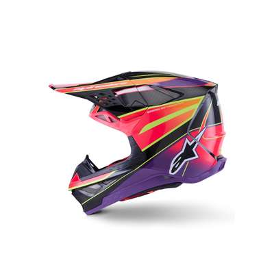 Supertech M10 Era MIPS® HelmetThe S-M10's design offers a smooth, attractive, aerodynamic profile which is streamlined and free of any external channels and features that might act as a load point in an impact or compromise the overall integrity of the helmet's construction Surface curvature promotes reduced friction on impact, allowing deflection and transfer of energy to protect the rider's head from direct force to the skull and referred to the neck and spinal column The S-M10 shell sizing solution ensures each helmet fit size has its own appropriate shell size to deliver the most anatomical solution for the wide variety of fit needs, thus ensuring riders have the correct fit to improve comfort, reduce overall weight, and improve effectiveness of the helmet in an impact Equipped with MIPS® Multi-directional Impact Protection System Chin bar's base area specifically sculpted to give a relief section and raised to clear the collarbone Soft EPS liner extends beyond the helmet shell itself and is covered by a flexible rubber compound providing a reduced chance of any sort of collarbone injury A-Head Fitment System allows easy adjustment of the angle and height that the helmet sits on the head Ultra-ventilated helmet with 28 individual intake and exhaust ports, not including the eye port, with 18 intakes and 10 exhausts Eject technology includes the eject helmet removal system Rotational acceleration and oblique impact performance Removable side pads, made from a semi-soft polymer for added protection, provide contact area to help spread impact energy Emergency Release System (ERS) Emergency Visor Release and Visor Extension provides protection 40% Carbon-Kevlar-Fiberglass, 15% Polystyrene (EPS), 12% Polyurethane, 10% Polypropylene, 8% PVC, 5% Other, 4% Acrylonitrile-Butadiene-Styren, 4% Polyamide, 2% Steel