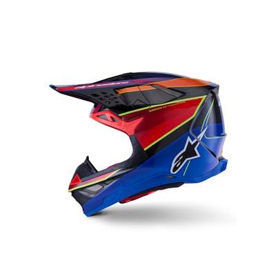 Supertech M10 Era MIPS® HelmetThe S-M10's design offers a smooth, attractive, aerodynamic profile which is streamlined and free of any external channels and features that might act as a load point in an impact or compromise the overall integrity of the helmet's construction Surface curvature promotes reduced friction on impact, allowing deflection and transfer of energy to protect the rider's head from direct force to the skull and referred to the neck and spinal column The S-M10 shell sizing solution ensures each helmet fit size has its own appropriate shell size to deliver the most anatomical solution for the wide variety of fit needs, thus ensuring riders have the correct fit to improve comfort, reduce overall weight, and improve effectiveness of the helmet in an impact Equipped with MIPS® Multi-directional Impact Protection System Chin bar's base area specifically sculpted to give a relief section and raised to clear the collarbone Soft EPS liner extends beyond the helmet shell itself and is covered by a flexible rubber compound providing a reduced chance of any sort of collarbone injury A-Head Fitment System allows easy adjustment of the angle and height that the helmet sits on the head Ultra-ventilated helmet with 28 individual intake and exhaust ports, not including the eye port, with 18 intakes and 10 exhausts Eject technology includes the eject helmet removal system Rotational acceleration and oblique impact performance Removable side pads, made from a semi-soft polymer for added protection, provide contact area to help spread impact energy Emergency Release System (ERS) Emergency Visor Release and Visor Extension provides protection 40% Carbon-Kevlar-Fiberglass, 15% Polystyrene (EPS), 12% Polyurethane, 10% Polypropylene, 8% PVC, 5% Other, 4% Acrylonitrile-Butadiene-Styren, 4% Polyamide, 2% Steel