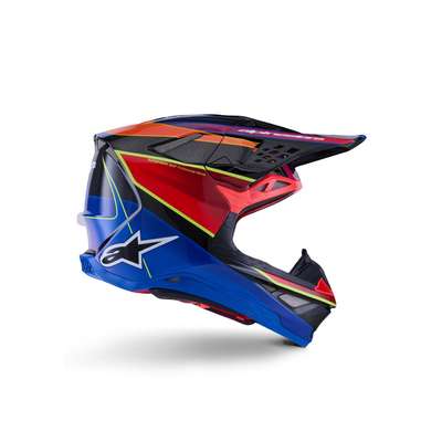 Supertech M10 Era MIPS® HelmetThe S-M10's design offers a smooth, attractive, aerodynamic profile which is streamlined and free of any external channels and features that might act as a load point in an impact or compromise the overall integrity of the helmet's construction Surface curvature promotes reduced friction on impact, allowing deflection and transfer of energy to protect the rider's head from direct force to the skull and referred to the neck and spinal column The S-M10 shell sizing solution ensures each helmet fit size has its own appropriate shell size to deliver the most anatomical solution for the wide variety of fit needs, thus ensuring riders have the correct fit to improve comfort, reduce overall weight, and improve effectiveness of the helmet in an impact Equipped with MIPS® Multi-directional Impact Protection System Chin bar's base area specifically sculpted to give a relief section and raised to clear the collarbone Soft EPS liner extends beyond the helmet shell itself and is covered by a flexible rubber compound providing a reduced chance of any sort of collarbone injury A-Head Fitment System allows easy adjustment of the angle and height that the helmet sits on the head Ultra-ventilated helmet with 28 individual intake and exhaust ports, not including the eye port, with 18 intakes and 10 exhausts Eject technology includes the eject helmet removal system Rotational acceleration and oblique impact performance Removable side pads, made from a semi-soft polymer for added protection, provide contact area to help spread impact energy Emergency Release System (ERS) Emergency Visor Release and Visor Extension provides protection 40% Carbon-Kevlar-Fiberglass, 15% Polystyrene (EPS), 12% Polyurethane, 10% Polypropylene, 8% PVC, 5% Other, 4% Acrylonitrile-Butadiene-Styren, 4% Polyamide, 2% Steel