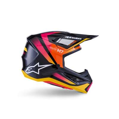 S-M7 Rise HelmetEngineered for off-roading racing, and is optimized to offer the perfect blend of superior ventilation and comfort in a lightweight, helmet while its supremely aerodynamic composite shell delivers exceptional impact protection A-Head Fitment and Visor Detaching System, the S-M7 is equipped with PLASMA technology at the lower side of the shell edge for optimum energy dissipation in case of contact with the collar bone area Key Features Aerodynamic profile design offers a smooth, streamlined shell free of any external channels and features that might act as a load point in an impact or compromise the overall integrity of the helmet's construction The shell's curvature promotes reduced friction on impact, allowing deflection and the most efficient transfer of energy to protect the rider's head from direct force and referred to the neck and spinal column Ultra-ventilated helmet with 20 individual intake and exhaust ports, not including the eye port, with 13 intakes and 7 exhausts, for optimum ventilation The fit can be further customized via the Alpinestars replacement cheek pads, which are available in all thicknesses and are exchangeable between all shell sizes Communication System Compatible — Cutaway section on the left-side of the EPS to seamlessly accommodate Intercom Systems, with earphone recesses on both sides for speakers Construction Linings are removable and washable by hand using warm water and neutral soap Fabrics have antimicrobial treatments Crown Pad — Crown pad and neck pad are elastically connected, for better oblique impact management Top Pad — The top pad is removable and adjustable in height thanks to the A-head system Cheek Pads — The cheek pads are fitted 3D foam, with an emergency extraction system (ERS), with a channel for hydration tube installation Cheek pads are interchangeable among all sizes Chin Strap — Chin strap is fitted with a 25 mm width nylon strap, stainless steel DD rings, removable covers for washing purpose Integrated channels on both sides to accommodate a hydration system Protection Visor Detaching System features a release mechanism is conceived to avoid the inherent weaknesses in other anchoring systems Visor is engineered to automatically detach from the shell when it is subjected to an impact energy greater than 15 Joules for optimum impact protection, regardless of the direction PLASMA inside; Alpinestars PLASMA technology is strategically-integrated into the S-M7's side pads for high performance shock absorption in a critical area, significantly reducing risk of injuries 42% Fiberglass, 20% Polystyrene (EPS), 10% Polyurethane, 8% Polypropylene, 5% Polyvinil Chloride, 5% Steel, 4% Polyamide, 3% Acrylonitrile-Butadiene-Styren, 3% Polyester