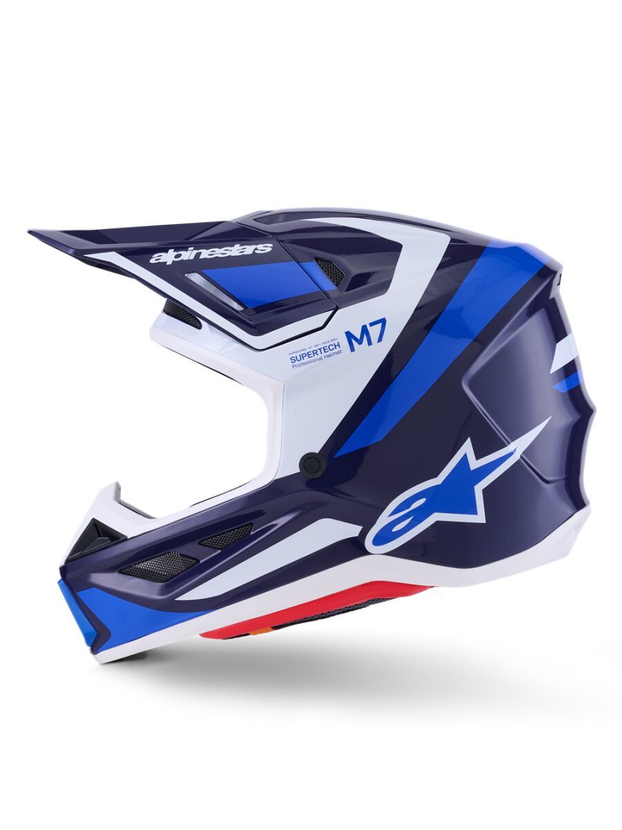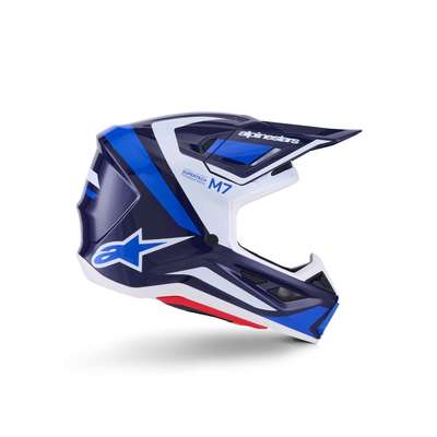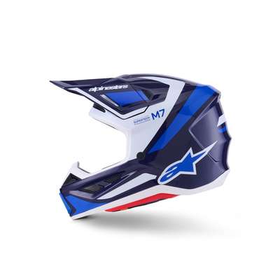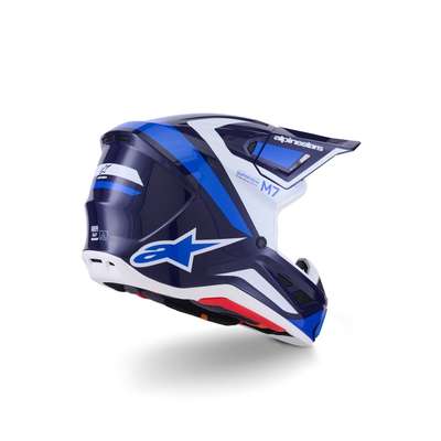 S-M7 Rise HelmetEngineered for off-roading racing, and is optimized to offer the perfect blend of superior ventilation and comfort in a lightweight, helmet while its supremely aerodynamic composite shell delivers exceptional impact protection A-Head Fitment and Visor Detaching System, the S-M7 is equipped with PLASMA technology at the lower side of the shell edge for optimum energy dissipation in case of contact with the collar bone area Key Features Aerodynamic profile design offers a smooth, streamlined shell free of any external channels and features that might act as a load point in an impact or compromise the overall integrity of the helmet's construction The shell's curvature promotes reduced friction on impact, allowing deflection and the most efficient transfer of energy to protect the rider's head from direct force and referred to the neck and spinal column Ultra-ventilated helmet with 20 individual intake and exhaust ports, not including the eye port, with 13 intakes and 7 exhausts, for optimum ventilation The fit can be further customized via the Alpinestars replacement cheek pads, which are available in all thicknesses and are exchangeable between all shell sizes Communication System Compatible — Cutaway section on the left-side of the EPS to seamlessly accommodate Intercom Systems, with earphone recesses on both sides for speakers Construction Linings are removable and washable by hand using warm water and neutral soap Fabrics have antimicrobial treatments Crown Pad — Crown pad and neck pad are elastically connected, for better oblique impact management Top Pad — The top pad is removable and adjustable in height thanks to the A-head system Cheek Pads — The cheek pads are fitted 3D foam, with an emergency extraction system (ERS), with a channel for hydration tube installation Cheek pads are interchangeable among all sizes Chin Strap — Chin strap is fitted with a 25 mm width nylon strap, stainless steel DD rings, removable covers for washing purpose Integrated channels on both sides to accommodate a hydration system Protection Visor Detaching System features a release mechanism is conceived to avoid the inherent weaknesses in other anchoring systems Visor is engineered to automatically detach from the shell when it is subjected to an impact energy greater than 15 Joules for optimum impact protection, regardless of the direction PLASMA inside; Alpinestars PLASMA technology is strategically-integrated into the S-M7's side pads for high performance shock absorption in a critical area, significantly reducing risk of injuries 42% Fiberglass, 20% Polystyrene (EPS), 10% Polyurethane, 8% Polypropylene, 5% Polyvinil Chloride, 5% Steel, 4% Polyamide, 3% Acrylonitrile-Butadiene-Styren, 3% Polyester