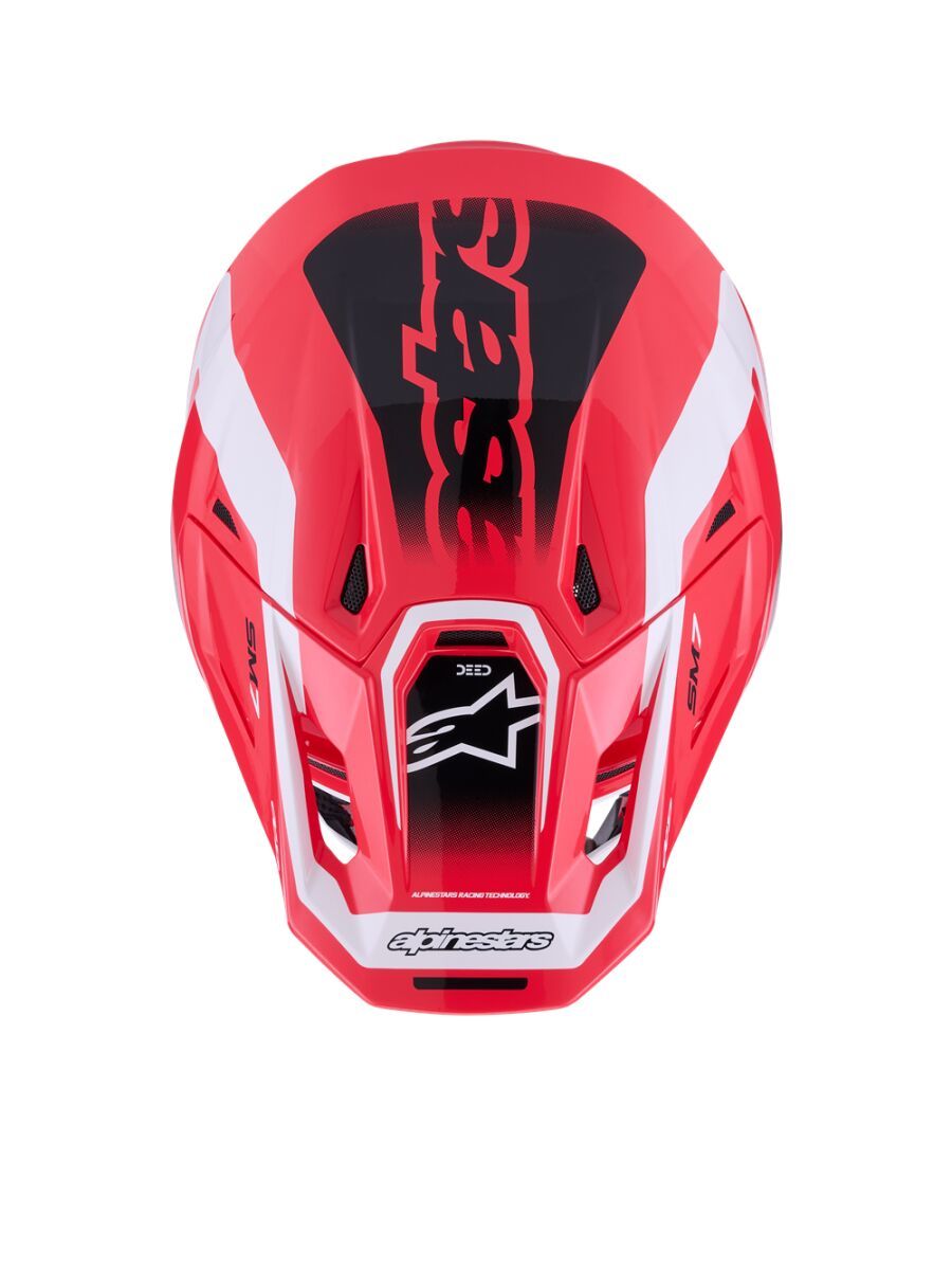 S-M7 Deed HelmetEngineered for off-roading racing, and is optimized to offer the perfect blend of superior ventilation and comfort in a lightweight, helmet while its supremely aerodynamic composite shell delivers exceptional impact protection A-Head Fitment and Visor Detaching System, the S-M7 is equipped with PLASMA technology at the lower side of the shell edge for optimum energy dissipation in case of contact with the collar bone area Key Features Aerodynamic profile design offers a smooth, streamlined shell free of any external channels and features that might act as a load point in an impact or compromise the overall integrity of the helmet's construction The shell's curvature promotes reduced friction on impact, allowing deflection and the most efficient transfer of energy to protect the rider's head from direct force and referred to the neck and spinal column Ultra-ventilated helmet with 20 individual intake and exhaust ports, not including the eye port, with 13 intakes and 7 exhausts, for optimum ventilation The fit can be further customized via the Alpinestars replacement cheek pads, which are available in all thicknesses and are exchangeable between all shell sizes Communication System Compatible — Cutaway section on the left-side of the EPS to seamlessly accommodate Intercom Systems, with earphone recesses on both sides for speakers Construction Linings are removable and washable by hand using warm water and neutral soap Fabrics have antimicrobial treatments Top Pad — The top pad is removable and adjustable in height thanks to the A-head system Crown Pad — Crown pad and neck pad are elastically connected, for better oblique impact management Cheek Pads — The cheek pads are fitted 3D foam, with an emergency extraction system (ERS), with a channel for hydration tube installation Cheek pads are interchangeable among all sizes Chin Strap — Chin strap is fitted with a 25 mm width nylon strap, stainless steel DD rings, removable covers for washing purpose Integrated channels on both sides to accommodate a hydration system Protection Visor Detaching System features a release mechanism is conceived to avoid the inherent weaknesses in other anchoring systems Visor is engineered to automatically detach from the shell when it is subjected to an impact energy greater than 15 Joules for optimum impact protection, regardless of the direction PLASMA inside; Alpinestars PLASMA technology is strategically-integrated into the S-M7's side pads for high performance shock absorption in a critical area, significantly reducing risk of injuries 42% Fiberglass, 20% Polystyrene (EPS), 10% Polyurethane, 8% Polypropylene, 5% Polyvinil Chloride, 5% Steel, 4% Polyamide, 3% Acrylonitrile-Butadiene-Styren, 3% Polyester