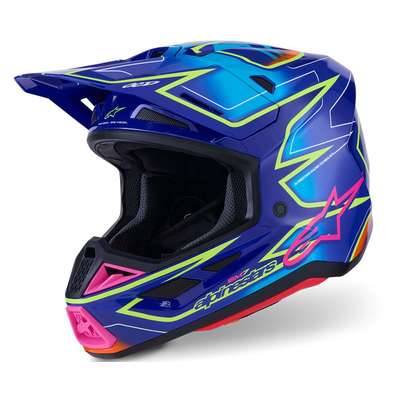 S-M7 Cast HelmetEngineered for off-roading racing, and is optimized to offer the perfect blend of superior ventilation and comfort in a lightweight, helmet while its supremely aerodynamic composite shell delivers exceptional impact protection A-Head Fitment and Visor Detaching System, the S-M7 is equipped with PLASMA technology at the lower side of the shell edge for optimum energy dissipation in case of contact with the collar bone area Key Features Aerodynamic profile design offers a smooth, streamlined shell free of any external channels and features that might act as a load point in an impact or compromise the overall integrity of the helmet's construction The shell's curvature promotes reduced friction on impact, allowing deflection and the most efficient transfer of energy to protect the rider's head from direct force and referred to the neck and spinal column Ultra-ventilated helmet with 20 individual intake and exhaust ports, not including the eye port, with 13 intakes and 7 exhausts, for optimum ventilation The fit can be further customized via the Alpinestars replacement cheek pads, which are available in all thicknesses and are exchangeable between all shell sizes Communication System Compatible — Cutaway section on the left-side of the EPS to seamlessly accommodate Intercom Systems, with earphone recesses on both sides for speakers Construction Linings are removable and washable by hand using warm water and neutral soap Fabrics have antimicrobial treatments Crown Pad — Crown pad and neck pad are elastically connected, for better oblique impact management Top Pad — The top pad is removable and adjustable in height thanks to the A-head system Cheek Pads — The cheek pads are fitted 3D foam, with an emergency extraction system (ERS), with a channel for hydration tube installation Cheek pads are interchangeable among all sizes Chin Strap — Chin strap is fitted with a 25 mm width nylon strap, stainless steel DD rings, removable covers for washing purpose Integrated channels on both sides to accommodate a hydration system Protection Visor Detaching System features a release mechanism is conceived to avoid the inherent weaknesses in other anchoring systems Visor is engineered to automatically detach from the shell when it is subjected to an impact energy greater than 15 Joules for optimum impact protection, regardless of the direction PLASMA inside; Alpinestars PLASMA technology is strategically-integrated into the S-M7's side pads for high performance shock absorption in a critical area, significantly reducing risk of injuries 42% Fiberglass, 20% Polystyrene (EPS), 10% Polyurethane, 8% Polypropylene, 5% Polyvinil Chloride, 5% Steel, 4% Polyamide, 3% Acrylonitrile-Butadiene-Styren, 3% Polyester
