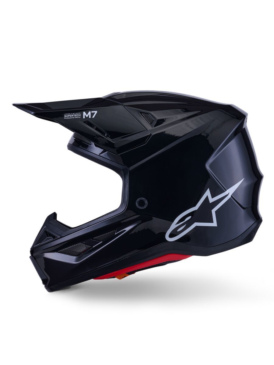 S-M7 HelmetEngineered for off-roading racing, and is optimized to offer the perfect blend of superior ventilation and comfort in a lightweight, helmet while its supremely aerodynamic composite shell delivers exceptional impact protection A-Head Fitment and Visor Detaching System, the S-M7 is equipped with PLASMA technology at the lower side of the shell edge for optimum energy dissipation in case of contact with the collar bone area Key Features Aerodynamic profile design offers a smooth, streamlined shell free of any external channels and features that might act as a load point in an impact or compromise the overall integrity of the helmet's construction The shell's curvature promotes reduced friction on impact, allowing deflection and the most efficient transfer of energy to protect the rider's head from direct force and referred to the neck and spinal column Ultra-ventilated helmet with 20 individual intake and exhaust ports, not including the eye port, with 13 intakes and 7 exhausts, for optimum ventilation The fit can be further customized via the Alpinestars replacement cheek pads, which are available in all thicknesses and are exchangeable between all shell sizes Communication System Compatible — Cutaway section on the left-side of the EPS to seamlessly accommodate Intercom Systems, with earphone recesses on both sides for speakers Construction Linings are removable and washable by hand using warm water and neutral soap Fabrics have antimicrobial treatments Crown Pad — Crown pad and neck pad are elastically connected, for better oblique impact management Top Pad — The top pad is removable and adjustable in height thanks to the A-head system Cheek Pads — The cheek pads are fitted 3D foam, with an emergency extraction system (ERS), with a channel for hydration tube installation Cheek pads are interchangeable among all sizes Chin Strap — Chin strap is fitted with a 25 mm width nylon strap, stainless steel DD rings, removable covers for washing purpose Integrated channels on both sides to accommodate a hydration system Protection Visor Detaching System features a release mechanism is conceived to avoid the inherent weaknesses in other anchoring systems Visor is engineered to automatically detach from the shell when it is subjected to an impact energy greater than 15 Joules for optimum impact protection, regardless of the direction PLASMA inside; Alpinestars PLASMA technology is strategically-integrated into the S-M7's side pads for high performance shock absorption in a critical area, significantly reducing risk of injuries 42% Fiberglass, 20% Polystyrene (EPS), 10% Polyurethane, 8% Polypropylene, 5% Polyvinil Chloride, 5% Steel, 4% Polyamide, 3% Acrylonitrile-Butadiene-Styren, 3% Polyester