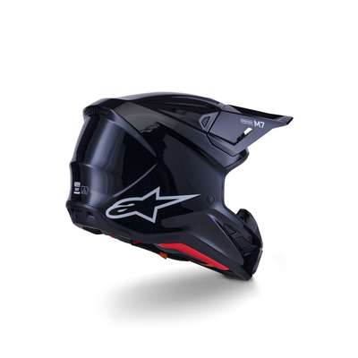 S-M7 HelmetEngineered for off-roading racing, and is optimized to offer the perfect blend of superior ventilation and comfort in a lightweight, helmet while its supremely aerodynamic composite shell delivers exceptional impact protection A-Head Fitment and Visor Detaching System, the S-M7 is equipped with PLASMA technology at the lower side of the shell edge for optimum energy dissipation in case of contact with the collar bone area Key Features Aerodynamic profile design offers a smooth, streamlined shell free of any external channels and features that might act as a load point in an impact or compromise the overall integrity of the helmet's construction The shell's curvature promotes reduced friction on impact, allowing deflection and the most efficient transfer of energy to protect the rider's head from direct force and referred to the neck and spinal column Ultra-ventilated helmet with 20 individual intake and exhaust ports, not including the eye port, with 13 intakes and 7 exhausts, for optimum ventilation The fit can be further customized via the Alpinestars replacement cheek pads, which are available in all thicknesses and are exchangeable between all shell sizes Communication System Compatible — Cutaway section on the left-side of the EPS to seamlessly accommodate Intercom Systems, with earphone recesses on both sides for speakers Construction Linings are removable and washable by hand using warm water and neutral soap Fabrics have antimicrobial treatments Crown Pad — Crown pad and neck pad are elastically connected, for better oblique impact management Top Pad — The top pad is removable and adjustable in height thanks to the A-head system Cheek Pads — The cheek pads are fitted 3D foam, with an emergency extraction system (ERS), with a channel for hydration tube installation Cheek pads are interchangeable among all sizes Chin Strap — Chin strap is fitted with a 25 mm width nylon strap, stainless steel DD rings, removable covers for washing purpose Integrated channels on both sides to accommodate a hydration system Protection Visor Detaching System features a release mechanism is conceived to avoid the inherent weaknesses in other anchoring systems Visor is engineered to automatically detach from the shell when it is subjected to an impact energy greater than 15 Joules for optimum impact protection, regardless of the direction PLASMA inside; Alpinestars PLASMA technology is strategically-integrated into the S-M7's side pads for high performance shock absorption in a critical area, significantly reducing risk of injuries 42% Fiberglass, 20% Polystyrene (EPS), 10% Polyurethane, 8% Polypropylene, 5% Polyvinil Chloride, 5% Steel, 4% Polyamide, 3% Acrylonitrile-Butadiene-Styren, 3% Polyester