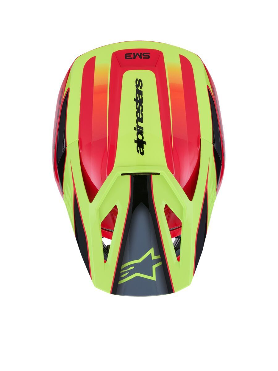 SM3 Fray HelmetThe S-M3 Helmet is engineered for MX, Enduro and Off-road use featuring innovations and technologies optimized for ease of use, comfort and impact performance. Shell construction featuring a thermo-injected shell incorporating a special polymer blend enhanced by varying degrees of thickness, engineered to deliver optimal combination of impact protection and light weight. Alpinestars patented innovative low friction coating is applied to inner part of the main EPS liner to reduce rotational acceleration forces that can result from certain oblique impacts. This layer acts as a slip plane to mimic the brain's own low friction cerebrospinal fluid, which is the body's natural defence against oblique impacts. Patented visor release system ensures visor release with correct pre-determined force, effectively reducing the forces on the neck during an impact. Maximised ventilation and high levels of heat transfer exchange thanks to 10 inlets and 7 exhaust ports. 48% Acrylonitrile-Butadiene-Styren, 20% Polyurethane, 16% Polystyrene (EPS), 6% Polypropylene, 4% Polyvinil Chloride, 2% Ethylene-Vinyl Acetate, 2% Steel, 1% Expanded Polypropylene, 1% Polyamide