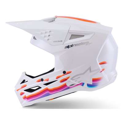 SM3 Force HelmetThe SM3 Helmet is engineered for MX, Enduro and Off-road use featuring innovations and technologies optimized for ease of use, comfort and impact performance. Shell construction featuring a thermo-injected shell incorporating a special polymer blend enhanced by varying degrees of thickness, engineered to deliver optimal combination of impact protection and light weight. Alpinestars patented innovative low friction coating is applied to inner part of the main EPS liner to reduce rotational acceleration forces that can result from certain oblique impacts. This layer acts as a slip plane to mimic the brain's own low friction cerebrospinal fluid, which is the body's natural defence against oblique impacts. Patented visor release system ensures visor release with correct pre-determined force, effectively reducing the forces on the neck during an impact. Maximised ventilation and high levels of heat transfer exchange thanks to 10 inlets and 7 exhaust ports. 48% Acrylonitrile-Butadiene-Styren, 20% Polyurethane, 16% Polystyrene (EPS), 6% Polypropylene, 4% Polyvinil Chloride, 2% Ethylene-Vinyl Acetate, 2% Steel, 1% Expanded Polypropylene, 1% Polyamide