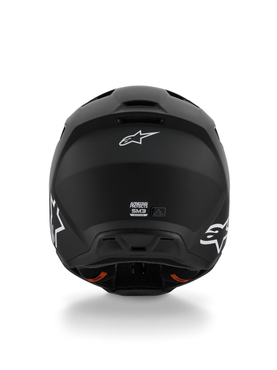 SM3 Solid HelmetThe S-M3 Helmet is engineered for MX, Enduro and Off-road use featuring innovations and technologies optimized for ease of use, comfort and impact performance. Shell construction featuring a thermo-injected shell incorporating a special polymer blend enhanced by varying degrees of thickness, engineered to deliver optimal combination of impact protection and light weight. Alpinestars patented innovative low friction coating is applied to inner part of the main EPS liner to reduce rotational acceleration forces that can result from certain oblique impacts. This layer acts as a slip plane to mimic the brain's own low friction cerebrospinal fluid, which is the body's natural defence against oblique impacts. Patented visor release system ensures visor release with correct pre-determined force, effectively reducing the forces on the neck during an impact. Maximised ventilation and high levels of heat transfer exchange thanks to 10 inlets and 7 exhaust ports. 48% Acrylonitrile-Butadiene-Styren, 20% Polyurethane, 16% Polystyrene (EPS), 6% Polypropylene, 4% Polyvinil Chloride, 2% Ethylene-Vinyl Acetate, 2% Steel, 1% Expanded Polypropylene, 1% Polyamide
