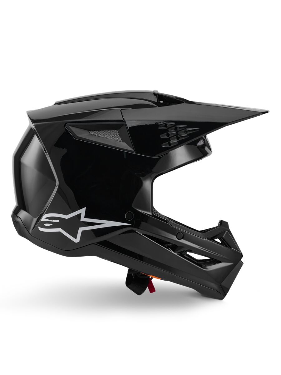 SM3 Solid HelmetThe S-M3 Helmet is engineered for MX, Enduro and Off-road use featuring innovations and technologies optimized for ease of use, comfort and impact performance. Shell construction featuring a thermo-injected shell incorporating a special polymer blend enhanced by varying degrees of thickness, engineered to deliver optimal combination of impact protection and light weight. Alpinestars patented innovative low friction coating is applied to inner part of the main EPS liner to reduce rotational acceleration forces that can result from certain oblique impacts. This layer acts as a slip plane to mimic the brain's own low friction cerebrospinal fluid, which is the body's natural defence against oblique impacts. Patented visor release system ensures visor release with correct pre-determined force, effectively reducing the forces on the neck during an impact. Maximised ventilation and high levels of heat transfer exchange thanks to 10 inlets and 7 exhaust ports. 48% Acrylonitrile-Butadiene-Styren, 20% Polyurethane, 16% Polystyrene (EPS), 6% Polypropylene, 4% Polyvinil Chloride, 2% Ethylene-Vinyl Acetate, 2% Steel, 1% Expanded Polypropylene, 1% Polyamide