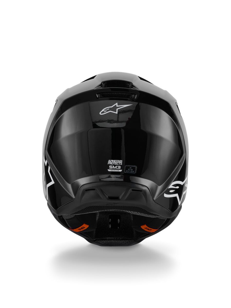 SM3 Solid HelmetThe S-M3 Helmet is engineered for MX, Enduro and Off-road use featuring innovations and technologies optimized for ease of use, comfort and impact performance. Shell construction featuring a thermo-injected shell incorporating a special polymer blend enhanced by varying degrees of thickness, engineered to deliver optimal combination of impact protection and light weight. Alpinestars patented innovative low friction coating is applied to inner part of the main EPS liner to reduce rotational acceleration forces that can result from certain oblique impacts. This layer acts as a slip plane to mimic the brain's own low friction cerebrospinal fluid, which is the body's natural defence against oblique impacts. Patented visor release system ensures visor release with correct pre-determined force, effectively reducing the forces on the neck during an impact. Maximised ventilation and high levels of heat transfer exchange thanks to 10 inlets and 7 exhaust ports. 48% Acrylonitrile-Butadiene-Styren, 20% Polyurethane, 16% Polystyrene (EPS), 6% Polypropylene, 4% Polyvinil Chloride, 2% Ethylene-Vinyl Acetate, 2% Steel, 1% Expanded Polypropylene, 1% Polyamide