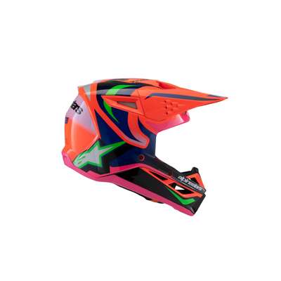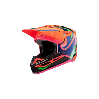 Youth SM3 Deegan HelmetAnatomically engineered and profiled specifically for youth and younger riders, the all-new SM3 Youth Helmet is optimized for MX, Enduro and Off-road use, and features a whole raft of technologies and innovations taken from Alpinestars range of adult helmets to deliver the optimal blend of performance, protection and comfort. This lightweight helmet features a thermo-injected shell incorporating a special polymer blend enhanced by varying degrees of thickness that is engineered to deliver the optimal combination of impact protection and light weight. Lightweight outer shell is constructed from a technologically advanced impact resistant thermoplastic in three sizes (Youth Small, Youth Medium and Youth Large. The SM3 Youth weighs 1060g. The fit can be tailored to the rider’s head thanks to the helmet’s crown and cheek pads, which are available as spare parts in different thicknesses. Youth Medium (YM) and Youth Large (YL) sizes share the same EPS size, which allows riders with an YM size to initially buy an YM helmet and then configure it to a Youth Large size as they grow via the crown and cheek pad spare parts. The Youth Small (YS) has a smaller EPS size and can be customized only via the cheek pads. Alpinestars extensive research has shown that the kids that wear a YS size are very small, typically 3 to 4 years old, and therefore they require a dedicated helmet fit. Construction The multiple density inner liner ensures the helmet is equipped with the correct density in the correct area for enhanced impact absorption, while also helping to reduce overall weight. The inner and outer surfaces are engineered to minimize the effects of oblique impacts. Alpinestars patented low friction coating is applied to the inner part of the main EPS liner to reduce the rotational acceleration forces that can result from certain oblique impacts. This layer essentially acts as a slip plane to mimic the brain’s own low friction cerebrospinal fluid, which is the body’s natural defense against oblique impacts. Maximized ventilation and high levels of heat transfer exchange thanks to 10 inlets and seven exhaust ports. The visor has been designed to direct air into the ports for enhanced airflow. Patented visor release system ensures the visor is released with the correct pre-determined amount of force, effectively reducing the forces on the rider’s neck during an impact. Comfort liner is constructed using recycled materials for a lower carbon footprint. Hydration tube channels are integrated into the helmet’s cheek pads for convenience and performance. Soft textile chin strap is 25mm for optimal safety and rider comfort. Protection Alpinestars has introduced a new in-house standard for the SM3 Youth to test the helmet’s chin to conditions heavier than the homologation standard, and in order to pass the Alpinestars’ new standards, the shell thickness and the structure of the helmet design itself have both been optimized in the chin area for superior impact performance. Equipped with an Emergency Release System and removable cheek pads to permit the safe and easy removal of the cheek pads while the helmet is still on, while the 3D contoured foam ensures rider comfort. Stainless steel D-rings ensure a tight and secure fit.