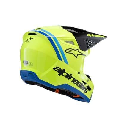 Youth SM3 Radium HelmetAnatomically engineered and profiled specifically for youth and younger riders, the all-new SM3 Youth Helmet is optimized for MX, Enduro and Off-road use. This lightweight helmet features a thermo-injected shell incorporating a special polymer blend enhanced by varying degrees of thickness that is engineered to deliver the optimal combination of impact protection and light weight. Lightweight outer shell is constructed from a technologically advanced impact resistant thermoplastic in three sizes (Youth Small, Youth Medium and Youth Large. The SM3 Youth weighs 1060g. The fit can be tailored to the rider’s head thanks to the helmet’s crown and cheek pads, which are available as genuine spare parts in different thicknesses. Youth Medium and Youth Large sizes share the same EPS size, which allows riders with an YM size to initially buy an YM helmet and then configure it to a Youth Large size as they grow via the crown and cheek pad spare parts. The Youth Small has a smaller EPS size and can be customized only via the cheek pads. Alpinestars extensive research has shown that the kids that wear a YS size are very small, typically 3 to 4 years old, and therefore they require a dedicated helmet fit. Multiple density inner liner ensures the helmet is equipped with the correct density in the correct area for enhanced impact absorption, while also helping reduce overall weight. The inner and outer surfaces are engineered to minimize the effects of oblique impacts. Alpinestars patented low friction coating is applied to the inner part of the main EPS liner to reduce the rotational acceleration forces that can result from certain oblique impacts. This layer essentially acts as a slip plane to mimic the brain’s own low friction cerebrospinal fluid, which is the body’s natural defense against oblique impacts. Patented visor release system ensures the visor is released with the correct pre-determined amount of force, effectively reducing the forces on the rider’s neck during an impact. Comfort liner is constructed using recycled materials for a lower carbon footprint. Hydration tube channels are integrated into the helmet’s cheek pads for convenience and performance. Safety Alpinestars has introduced a new in-house standard for the SM3 Youth to test the helmet’s chin to conditions heavier than the homologation standard, and in order to pass the Alpinestars’ new standards, the shell thickness and the structure of the helmet design itself have both been optimized on the chin area for superior impact performance. Equipped with an Emergency Release System and removable cheek pads to permit the safe and easy removal of the cheek pads while the helmet is still on, while the 3D contoured foam ensures rider comfort. Soft textile chin strap is 25mm for optimal safety and rider comfort. Stainless steel D-rings ensure a tight and secure fit. Ventilation Maximized ventilation and high levels of heat transfer exchange thanks to 10 inlets and seven exhaust ports. The visor has been designed to direct air into the ports for enhanced airflow.