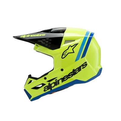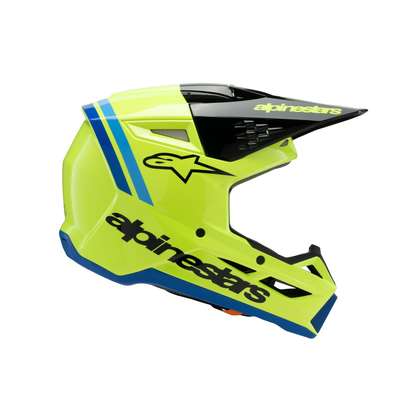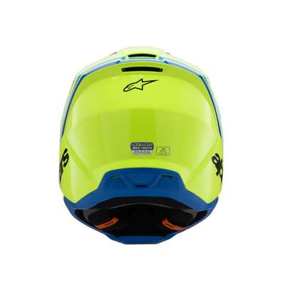 Youth SM3 Radium HelmetAnatomically engineered and profiled specifically for youth and younger riders, the all-new SM3 Youth Helmet is optimized for MX, Enduro and Off-road use. This lightweight helmet features a thermo-injected shell incorporating a special polymer blend enhanced by varying degrees of thickness that is engineered to deliver the optimal combination of impact protection and light weight. Lightweight outer shell is constructed from a technologically advanced impact resistant thermoplastic in three sizes (Youth Small, Youth Medium and Youth Large. The SM3 Youth weighs 1060g. The fit can be tailored to the rider’s head thanks to the helmet’s crown and cheek pads, which are available as genuine spare parts in different thicknesses. Youth Medium and Youth Large sizes share the same EPS size, which allows riders with an YM size to initially buy an YM helmet and then configure it to a Youth Large size as they grow via the crown and cheek pad spare parts. The Youth Small has a smaller EPS size and can be customized only via the cheek pads. Alpinestars extensive research has shown that the kids that wear a YS size are very small, typically 3 to 4 years old, and therefore they require a dedicated helmet fit. Multiple density inner liner ensures the helmet is equipped with the correct density in the correct area for enhanced impact absorption, while also helping reduce overall weight. The inner and outer surfaces are engineered to minimize the effects of oblique impacts. Alpinestars patented low friction coating is applied to the inner part of the main EPS liner to reduce the rotational acceleration forces that can result from certain oblique impacts. This layer essentially acts as a slip plane to mimic the brain’s own low friction cerebrospinal fluid, which is the body’s natural defense against oblique impacts. Patented visor release system ensures the visor is released with the correct pre-determined amount of force, effectively reducing the forces on the rider’s neck during an impact. Comfort liner is constructed using recycled materials for a lower carbon footprint. Hydration tube channels are integrated into the helmet’s cheek pads for convenience and performance. Safety Alpinestars has introduced a new in-house standard for the SM3 Youth to test the helmet’s chin to conditions heavier than the homologation standard, and in order to pass the Alpinestars’ new standards, the shell thickness and the structure of the helmet design itself have both been optimized on the chin area for superior impact performance. Equipped with an Emergency Release System and removable cheek pads to permit the safe and easy removal of the cheek pads while the helmet is still on, while the 3D contoured foam ensures rider comfort. Soft textile chin strap is 25mm for optimal safety and rider comfort. Stainless steel D-rings ensure a tight and secure fit. Ventilation Maximized ventilation and high levels of heat transfer exchange thanks to 10 inlets and seven exhaust ports. The visor has been designed to direct air into the ports for enhanced airflow.