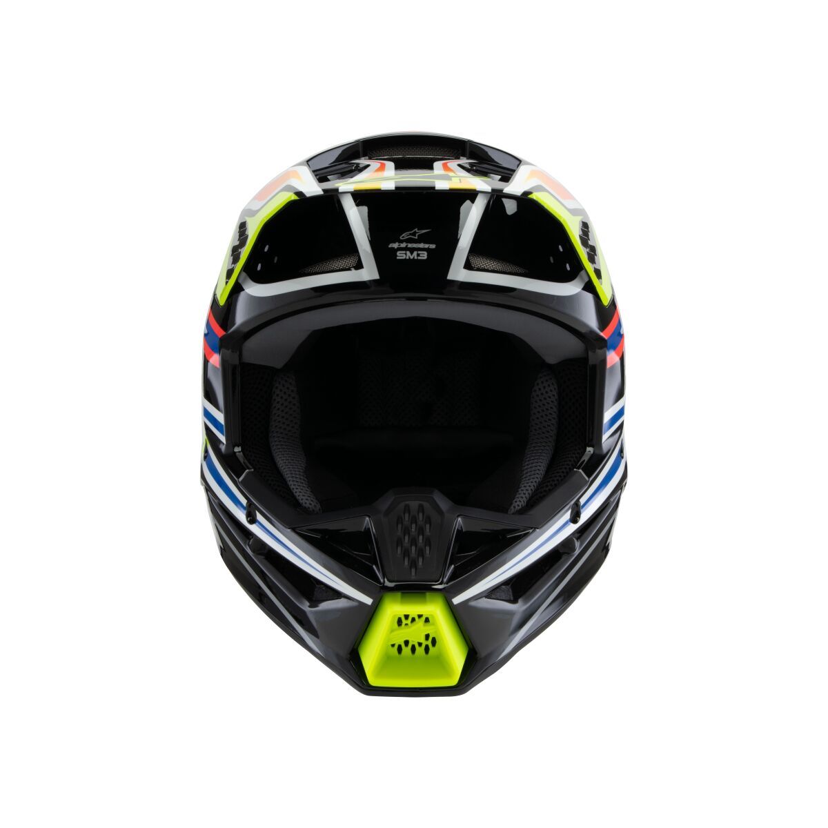 Youth SM3 Wurx HelmetAnatomically engineered and profiled specifically for youth and younger riders, the all-new SM3 Youth Helmet is optimized for MX, Enduro and Off-road use. This lightweight helmet features a thermo-injected shell incorporating a special polymer blend enhanced by varying degrees of thickness that is engineered to deliver the optimal combination of impact protection and light weight. Lightweight outer shell is constructed from a technologically advanced impact resistant thermoplastic in three sizes (Youth Small, Youth Medium and Youth Large. The SM3 Youth weighs 1060g. The fit can be tailored to the rider’s head thanks to the helmet’s crown and cheek pads, which are available as genuine spare parts in different thicknesses. Youth Medium and Youth Large sizes share the same EPS size, which allows riders with an YM size to initially buy an YM helmet and then configure it to a Youth Large size as they grow via the crown and cheek pad spare parts. The Youth Small has a smaller EPS size and can be customized only via the cheek pads. Alpinestars extensive research has shown that the kids that wear a YS size are very small, typically 3 to 4 years old, and therefore they require a dedicated helmet fit. Multiple density inner liner ensures the helmet is equipped with the correct density in the correct area for enhanced impact absorption, while also helping reduce overall weight. The inner and outer surfaces are engineered to minimize the effects of oblique impacts. Alpinestars patented low friction coating is applied to the inner part of the main EPS liner to reduce the rotational acceleration forces that can result from certain oblique impacts. This layer essentially acts as a slip plane to mimic the brain’s own low friction cerebrospinal fluid, which is the body’s natural defense against oblique impacts. Patented visor release system ensures the visor is released with the correct pre-determined amount of force, effectively reducing the forces on the rider’s neck during an impact. Comfort liner is constructed using recycled materials for a lower carbon footprint. Hydration tube channels are integrated into the helmet’s cheek pads for convenience and performance. Safety Alpinestars has introduced a new in-house standard for the SM3 Youth to test the helmet’s chin to conditions heavier than the homologation standard, and in order to pass the Alpinestars’ new standards, the shell thickness and the structure of the helmet design itself have both been optimized on the chin area for superior impact performance. Equipped with an Emergency Release System and removable cheek pads to permit the safe and easy removal of the cheek pads while the helmet is still on, while the 3D contoured foam ensures rider comfort. Soft textile chin strap is 25mm for optimal safety and rider comfort. Stainless steel D-rings ensure a tight and secure fit. Ventilation Maximized ventilation and high levels of heat transfer exchange thanks to 10 inlets and seven exhaust ports. The visor has been designed to direct air into the ports for enhanced airflow.