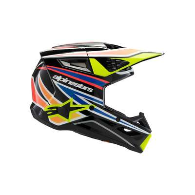 Youth SM3 Wurx HelmetAnatomically engineered and profiled specifically for youth and younger riders, the all-new SM3 Youth Helmet is optimized for MX, Enduro and Off-road use. This lightweight helmet features a thermo-injected shell incorporating a special polymer blend enhanced by varying degrees of thickness that is engineered to deliver the optimal combination of impact protection and light weight. Lightweight outer shell is constructed from a technologically advanced impact resistant thermoplastic in three sizes (Youth Small, Youth Medium and Youth Large. The SM3 Youth weighs 1060g. The fit can be tailored to the rider’s head thanks to the helmet’s crown and cheek pads, which are available as genuine spare parts in different thicknesses. Youth Medium and Youth Large sizes share the same EPS size, which allows riders with an YM size to initially buy an YM helmet and then configure it to a Youth Large size as they grow via the crown and cheek pad spare parts. The Youth Small has a smaller EPS size and can be customized only via the cheek pads. Alpinestars extensive research has shown that the kids that wear a YS size are very small, typically 3 to 4 years old, and therefore they require a dedicated helmet fit. Multiple density inner liner ensures the helmet is equipped with the correct density in the correct area for enhanced impact absorption, while also helping reduce overall weight. The inner and outer surfaces are engineered to minimize the effects of oblique impacts. Alpinestars patented low friction coating is applied to the inner part of the main EPS liner to reduce the rotational acceleration forces that can result from certain oblique impacts. This layer essentially acts as a slip plane to mimic the brain’s own low friction cerebrospinal fluid, which is the body’s natural defense against oblique impacts. Patented visor release system ensures the visor is released with the correct pre-determined amount of force, effectively reducing the forces on the rider’s neck during an impact. Comfort liner is constructed using recycled materials for a lower carbon footprint. Hydration tube channels are integrated into the helmet’s cheek pads for convenience and performance. Safety Alpinestars has introduced a new in-house standard for the SM3 Youth to test the helmet’s chin to conditions heavier than the homologation standard, and in order to pass the Alpinestars’ new standards, the shell thickness and the structure of the helmet design itself have both been optimized on the chin area for superior impact performance. Equipped with an Emergency Release System and removable cheek pads to permit the safe and easy removal of the cheek pads while the helmet is still on, while the 3D contoured foam ensures rider comfort. Soft textile chin strap is 25mm for optimal safety and rider comfort. Stainless steel D-rings ensure a tight and secure fit. Ventilation Maximized ventilation and high levels of heat transfer exchange thanks to 10 inlets and seven exhaust ports. The visor has been designed to direct air into the ports for enhanced airflow.