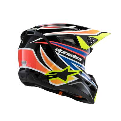 Youth SM3 Wurx HelmetAnatomically engineered and profiled specifically for youth and younger riders, the all-new SM3 Youth Helmet is optimized for MX, Enduro and Off-road use. This lightweight helmet features a thermo-injected shell incorporating a special polymer blend enhanced by varying degrees of thickness that is engineered to deliver the optimal combination of impact protection and light weight. Lightweight outer shell is constructed from a technologically advanced impact resistant thermoplastic in three sizes (Youth Small, Youth Medium and Youth Large. The SM3 Youth weighs 1060g. The fit can be tailored to the rider’s head thanks to the helmet’s crown and cheek pads, which are available as genuine spare parts in different thicknesses. Youth Medium and Youth Large sizes share the same EPS size, which allows riders with an YM size to initially buy an YM helmet and then configure it to a Youth Large size as they grow via the crown and cheek pad spare parts. The Youth Small has a smaller EPS size and can be customized only via the cheek pads. Alpinestars extensive research has shown that the kids that wear a YS size are very small, typically 3 to 4 years old, and therefore they require a dedicated helmet fit. Multiple density inner liner ensures the helmet is equipped with the correct density in the correct area for enhanced impact absorption, while also helping reduce overall weight. The inner and outer surfaces are engineered to minimize the effects of oblique impacts. Alpinestars patented low friction coating is applied to the inner part of the main EPS liner to reduce the rotational acceleration forces that can result from certain oblique impacts. This layer essentially acts as a slip plane to mimic the brain’s own low friction cerebrospinal fluid, which is the body’s natural defense against oblique impacts. Patented visor release system ensures the visor is released with the correct pre-determined amount of force, effectively reducing the forces on the rider’s neck during an impact. Comfort liner is constructed using recycled materials for a lower carbon footprint. Hydration tube channels are integrated into the helmet’s cheek pads for convenience and performance. Safety Alpinestars has introduced a new in-house standard for the SM3 Youth to test the helmet’s chin to conditions heavier than the homologation standard, and in order to pass the Alpinestars’ new standards, the shell thickness and the structure of the helmet design itself have both been optimized on the chin area for superior impact performance. Equipped with an Emergency Release System and removable cheek pads to permit the safe and easy removal of the cheek pads while the helmet is still on, while the 3D contoured foam ensures rider comfort. Soft textile chin strap is 25mm for optimal safety and rider comfort. Stainless steel D-rings ensure a tight and secure fit. Ventilation Maximized ventilation and high levels of heat transfer exchange thanks to 10 inlets and seven exhaust ports. The visor has been designed to direct air into the ports for enhanced airflow.