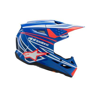 Youth SM3 Wurx HelmetAnatomically engineered and profiled specifically for youth and younger riders, the all-new SM3 Youth Helmet is optimized for MX, Enduro and Off-road use. This lightweight helmet features a thermo-injected shell incorporating a special polymer blend enhanced by varying degrees of thickness that is engineered to deliver the optimal combination of impact protection and light weight. Lightweight outer shell is constructed from a technologically advanced impact resistant thermoplastic in three sizes (Youth Small, Youth Medium and Youth Large. The SM3 Youth weighs 1060g. The fit can be tailored to the rider’s head thanks to the helmet’s crown and cheek pads, which are available as genuine spare parts in different thicknesses. Youth Medium and Youth Large sizes share the same EPS size, which allows riders with an YM size to initially buy an YM helmet and then configure it to a Youth Large size as they grow via the crown and cheek pad spare parts. The Youth Small has a smaller EPS size and can be customized only via the cheek pads. Alpinestars extensive research has shown that the kids that wear a YS size are very small, typically 3 to 4 years old, and therefore they require a dedicated helmet fit. Multiple density inner liner ensures the helmet is equipped with the correct density in the correct area for enhanced impact absorption, while also helping reduce overall weight. The inner and outer surfaces are engineered to minimize the effects of oblique impacts. Alpinestars patented low friction coating is applied to the inner part of the main EPS liner to reduce the rotational acceleration forces that can result from certain oblique impacts. This layer essentially acts as a slip plane to mimic the brain’s own low friction cerebrospinal fluid, which is the body’s natural defense against oblique impacts. Patented visor release system ensures the visor is released with the correct pre-determined amount of force, effectively reducing the forces on the rider’s neck during an impact. Comfort liner is constructed using recycled materials for a lower carbon footprint. Hydration tube channels are integrated into the helmet’s cheek pads for convenience and performance. Safety Alpinestars has introduced a new in-house standard for the SM3 Youth to test the helmet’s chin to conditions heavier than the homologation standard, and in order to pass the Alpinestars’ new standards, the shell thickness and the structure of the helmet design itself have both been optimized on the chin area for superior impact performance. Equipped with an Emergency Release System and removable cheek pads to permit the safe and easy removal of the cheek pads while the helmet is still on, while the 3D contoured foam ensures rider comfort. Soft textile chin strap is 25mm for optimal safety and rider comfort. Stainless steel D-rings ensure a tight and secure fit. Ventilation Maximized ventilation and high levels of heat transfer exchange thanks to 10 inlets and seven exhaust ports. The visor has been designed to direct air into the ports for enhanced airflow.