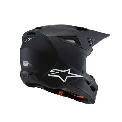 Youth SM3 Solid HelmetAnatomically engineered and profiled specifically for youth and younger riders, the all-new SM3 Youth Helmet is optimized for MX, Enduro and Off-road use. This lightweight helmet features a thermo-injected shell incorporating a special polymer blend enhanced by varying degrees of thickness that is engineered to deliver the optimal combination of impact protection and light weight. Lightweight outer shell is constructed from a technologically advanced impact resistant thermoplastic in three sizes (Youth Small, Youth Medium and Youth Large. The SM3 Youth weighs 1060g. The fit can be tailored to the rider’s head thanks to the helmet’s crown and cheek pads, which are available as genuine spare parts in different thicknesses. Youth Medium and Youth Large sizes share the same EPS size, which allows riders with an YM size to initially buy an YM helmet and then configure it to a Youth Large size as they grow via the crown and cheek pad spare parts. The Youth Small has a smaller EPS size and can be customized only via the cheek pads. Alpinestars extensive research has shown that the kids that wear a YS size are very small, typically 3 to 4 years old, and therefore they require a dedicated helmet fit. Multiple density inner liner ensures the helmet is equipped with the correct density in the correct area for enhanced impact absorption, while also helping reduce overall weight. The inner and outer surfaces are engineered to minimize the effects of oblique impacts. Alpinestars patented low friction coating is applied to the inner part of the main EPS liner to reduce the rotational acceleration forces that can result from certain oblique impacts. This layer essentially acts as a slip plane to mimic the brain’s own low friction cerebrospinal fluid, which is the body’s natural defense against oblique impacts. Patented visor release system ensures the visor is released with the correct pre-determined amount of force, effectively reducing the forces on the rider’s neck during an impact. Comfort liner is constructed using recycled materials for a lower carbon footprint. Hydration tube channels are integrated into the helmet’s cheek pads for convenience and performance. Safety Alpinestars has introduced a new in-house standard for the SM3 Youth to test the helmet’s chin to conditions heavier than the homologation standard, and in order to pass the Alpinestars’ new standards, the shell thickness and the structure of the helmet design itself have both been optimized on the chin area for superior impact performance. Equipped with an Emergency Release System and removable cheek pads to permit the safe and easy removal of the cheek pads while the helmet is still on, while the 3D contoured foam ensures rider comfort. Soft textile chin strap is 25mm for optimal safety and rider comfort. Stainless steel D-rings ensure a tight and secure fit. Ventilation Maximized ventilation and high levels of heat transfer exchange thanks to 10 inlets and seven exhaust ports. The visor has been designed to direct air into the ports for enhanced airflow.