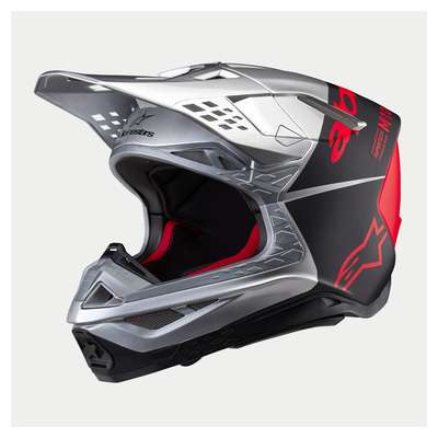 Supertech M10 Flood MIPS® HelmetThe S-M10 shell sizing solution ensures each helmet fit size has its own appropriate shell size to deliver the most anatomical solution for the wide variety of fit needs, thus ensuring riders have the correct fit to improve comfort, reduce overall weight, and improve effectiveness of the helmet in an impact. Surface curvature promotes reduced friction on impact, allowing deflection and transfer of energy to protect the rider's head from direct force to the skull and referred to the neck and spinal column. The S-M10's design offers a smooth, attractive, aerodynamic profile which is streamlined and free of any external channels and features that might act as a load point in an impact or compromise the overall integrity of the helmet's construction. Fitted with E-2, last generation of MIPS, integrated low friction layer designed to reduce rotational motion transferred to the brain from angled impacts to the head. Chin bar's base area specifically sculpted to give a relief section and raised to clear the collarbone. Soft EPS liner extends beyond the helmet shell itself and is covered by a flexible rubber compound providing a reduced chance of any sort of collarbone injury. A-Head Fitment System allows easy adjustment of the angle and height that the helmet sits on the head. Ultra-ventilated helmet with 28 individual intake and exhaust ports, not including the eye port, with 18 intakes and 10 exhausts. Eject technology includes the eject helmet removal system. Rotational acceleration and oblique impact performance. Removable side pads, made from a semi-soft polymer for added protection, provide contact area to help spread impact energy. Emergency Release System (ERS) Emergency Visor Release and Visor Extension provides protection. 40% Carbon-Kevlar®-Fiberglass, 15% Polystyrene (EPS), 12% Polyurethane, 10% Polypropylene, 8% PVC, 4% Acrylonitrile-Butadiene-Styren, 4% Polyamide, 2% Steel & 5% Other