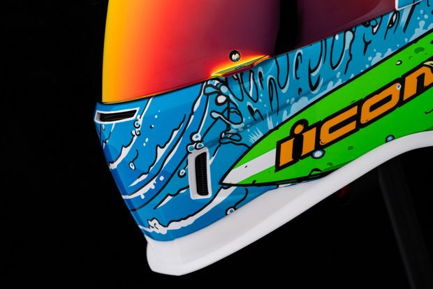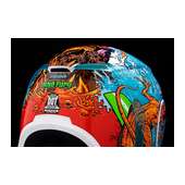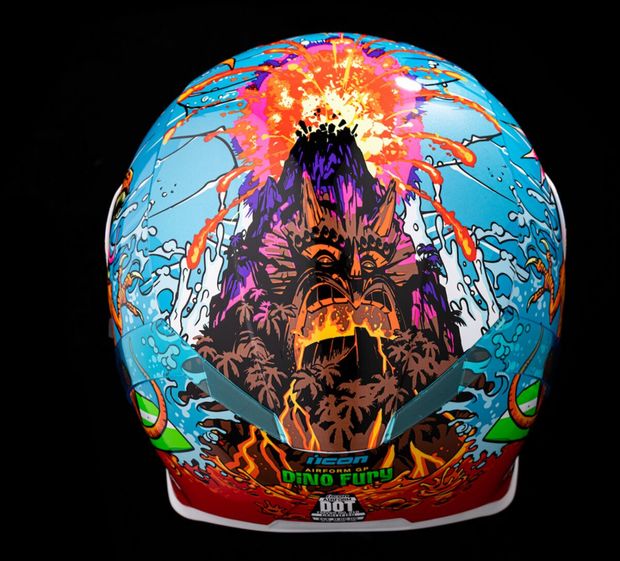 Airform™ Dino Fury HelmetContinuous venting system Injection molded polycarbonate shell for strength Internal airflow geometry Sculpted neck roll Fog-free ICON Optics™ Shield with Rapid-Release™ System Prolock™ positive shield locking system The Dropshield™ visor must only be used while the main face shield is in the fully closed position Internal Dropshield™ with exterior switch Removable molded breath deflector Removable Hydradry™ 3-piece moisture wicking liner Internal speaker pockets work with ICON's R.A.U. Bluetooth device Includes Clear & RST Red ICON Optics™ Shields Includes Dark Smoke Dropshield™
