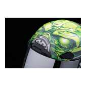 Airframe Pro™ Outbreak HelmetLow-profile vents throughout the shell Sculpted neck roll reduces jacket/suit interference Fog-free ICON Optics™ Shield with Rapid-Release™ system Linear ported forehead vents Prolock™ positive shield locking system Five-piece modular liner with moisture-wicking Hydradry™ Handcrafted composite fiberglass FRP (fiber-reinforced plastic) shell Removable breath deflector and chin curtain Includes Clear & RST Silver ICON Optics™ Shield