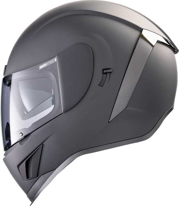 Airform™ Dark HelmetInjection molded polycarbonate shell for strength Sculpted neck roll Fog-free ICON Optics™ Shield with Rapid-Release™ System Prolock™ positive shield locking system Internal airflow geometry Continuous venting system The Dropshield™ visor must only be used while the main face shield is in the fully closed position Removable molded breath deflector Internal Dropshield™ with exterior switch Removable Hydradry™ 3-piece moisture wicking liner Internal speaker pockets work with ICON's R.A.U. Bluetooth device Includes Clear & Dark Smoke ICON Optics™ Shield Includes Dark Smoke Dropshield™ Includes Rubatone Chin Vents™