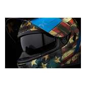 Airform™ Old Glory HelmetInjection molded polycarbonate shell for strength Internal airflow geometry Continuous venting system Sculpted neck roll Fog-free ICON Optics™ Shield with Rapid-Release™ System Prolock™ positive shield locking system Internal Dropshield™ with exterior switch The Dropshield™ visor must only be used while the main face shield is in the fully closed position Removable molded breath deflector Removable Hydradry™ 3-piece moisture wicking liner Internal speaker pockets work with ICON's R.A.U. Bluetooth device Glow in the dark Includes Clear and RST Blue Optics™ shields Includes Dark Smoke Dropshield™