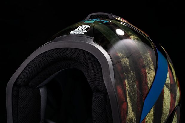 Airform™ Old Glory HelmetInjection molded polycarbonate shell for strength Internal airflow geometry Continuous venting system Sculpted neck roll Fog-free ICON Optics™ Shield with Rapid-Release™ System Prolock™ positive shield locking system Internal Dropshield™ with exterior switch The Dropshield™ visor must only be used while the main face shield is in the fully closed position Removable molded breath deflector Removable Hydradry™ 3-piece moisture wicking liner Internal speaker pockets work with ICON's R.A.U. Bluetooth device Glow in the dark Includes Clear and RST Blue Optics™ shields Includes Dark Smoke Dropshield™