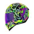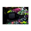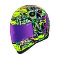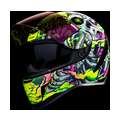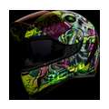 Airform™ Hippy Dippy HelmetInjection-molded polycarbonate shell for strength and durability Intermediate-oval headform Clear Fog-Free Optics™ shield installed Purple RST Fog-Free Optics™ shield included Dark smoke internal DropShield™ Prolock™ shield locking system Moisture-Wicking Hydradry™ removable comfort liner Purple RST Spoiler Kit Glow in the Dark Graphics Internal airflow geometry Continuous venting system Sculpted neck roll Fog-free ICON Optics™ Shield with Rapid-Release™ System The Dropshield™ visor must only be used while the main face shield is in the fully closed position Removable molded breath deflector Internal speaker pockets work with ICON's R.A.U. Bluetooth device