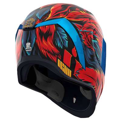 Airform™ Fever Dream HelmetInjection molded polycarbonate shell for strength Internal airflow geometry Continuous venting system Sculpted neck roll Fog-free ICON Optics™ Shield with Rapid-Release™ System Prolock™ positive shield locking system Internal Dropshield™ with exterior switch The Dropshield™ visor must only be used while the main face shield is in the fully closed position Removable molded breath deflector Removable Hydradry™ 3-piece moisture wicking liner Internal speaker pockets work with ICON's R.A.U. Bluetooth device Includes Clear & RST Blue fog-free Optics™ shield