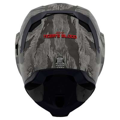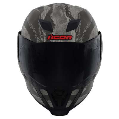Airflite™ Tiger's Blood MIPS® HelmetInjection molded polycarbonate shell for strength Multiple oversized intake and exhaust ports Fog-Free Dropshield™ with exterior switch Quick-change Fog-Free Fliteshield™ with side plates Removable molded breath deflector and chin curtain Recessed twin channel supervent cooling system The Dropshield™ visor must only be used while the main face shield is in the fully closed position Internal speaker pockets work with ICON's R.A.U. Bluetooth device Removable Hydradry™ moisture wicking liner Includes Clear Fliteshield™ and Dark Smoke Forceshield™ Includes Dark Smoke Dropshield™